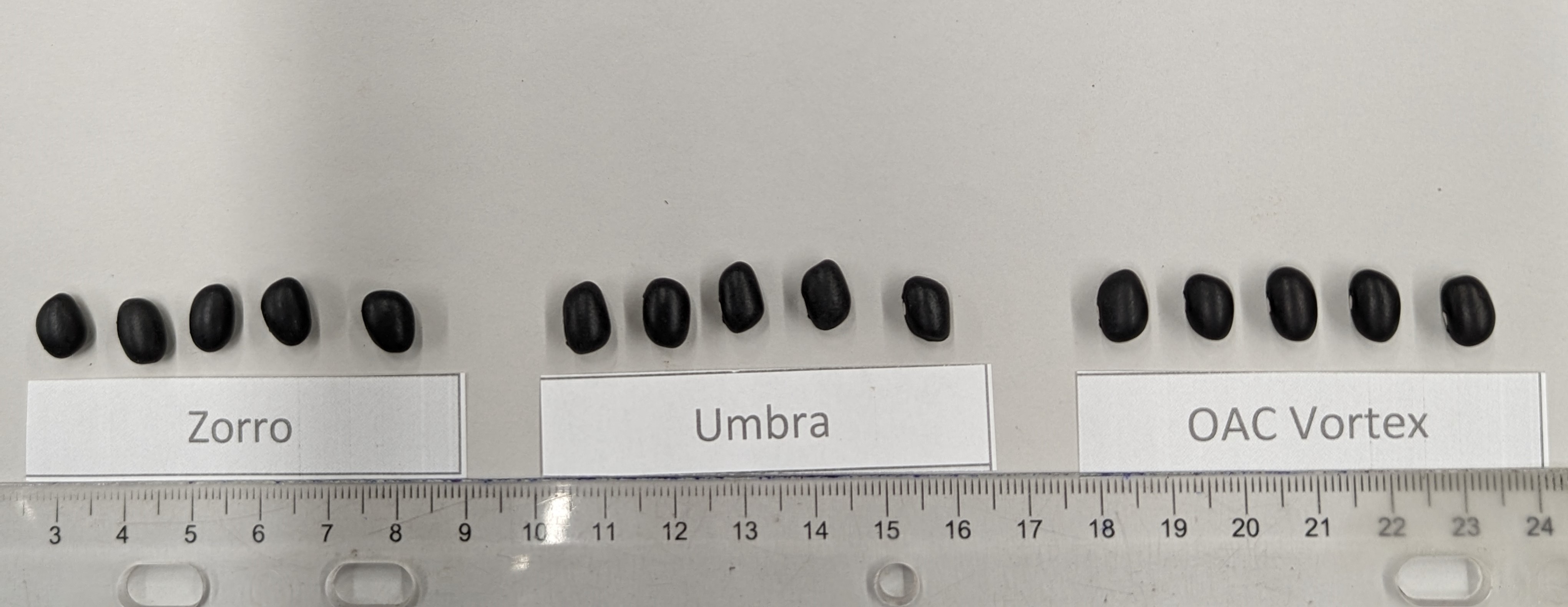 Bean: Umbra' (centre) with reference varieties Zorro' (left) and OAC Vortex' (right)
