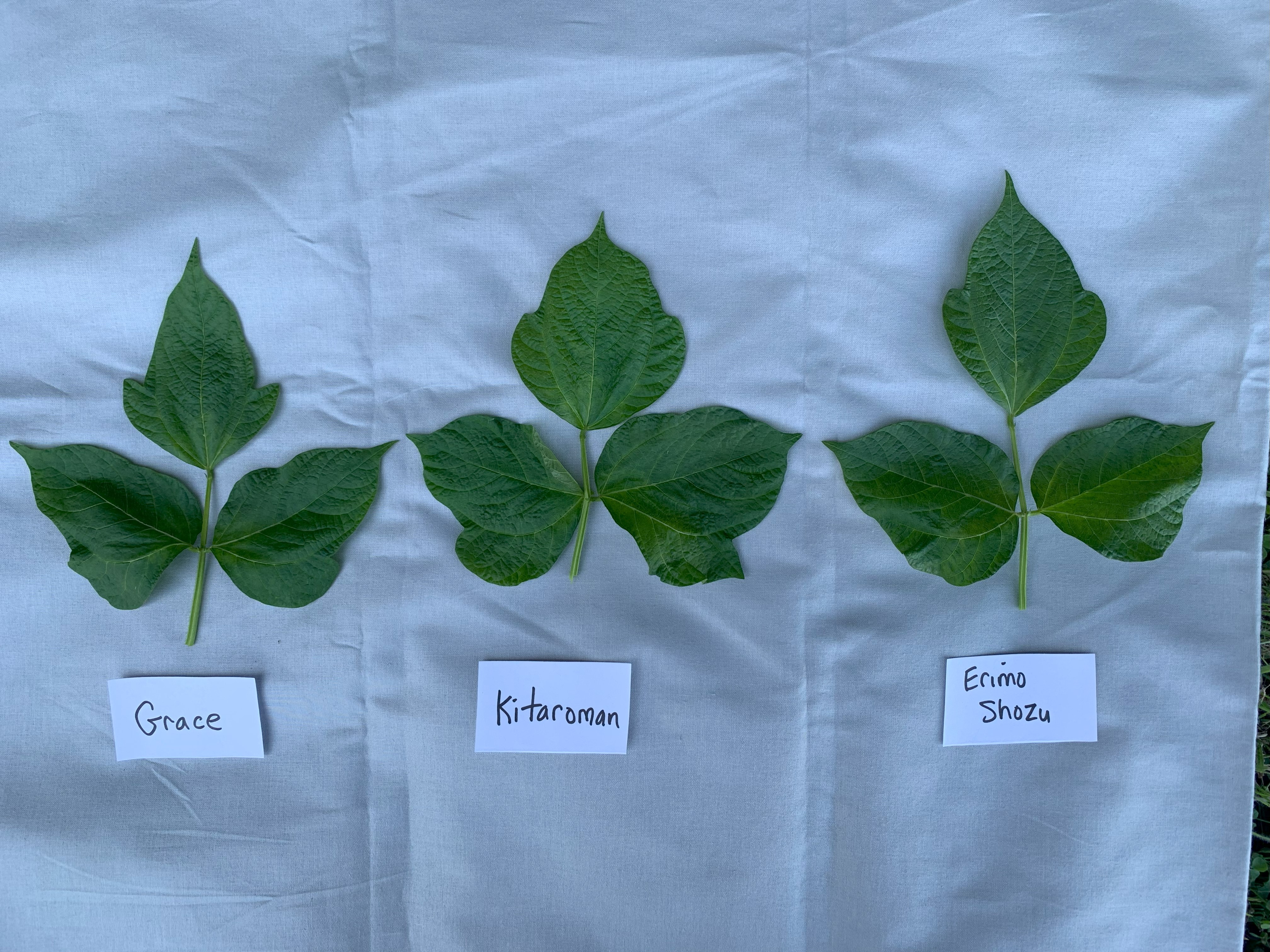 Summary: The upperside of the leaf blade of Grace' is a darker green than that of Kitaroman'. The pod of Grace' is longer than the pod of Erimo Shozu' and narrower than the pod of Kitaroman'. The pod of Grace' is medium brown while that of Erimo Shozu' is light brown. The pod of Grace' has fewer seeds than the pod of Kitaroman'.