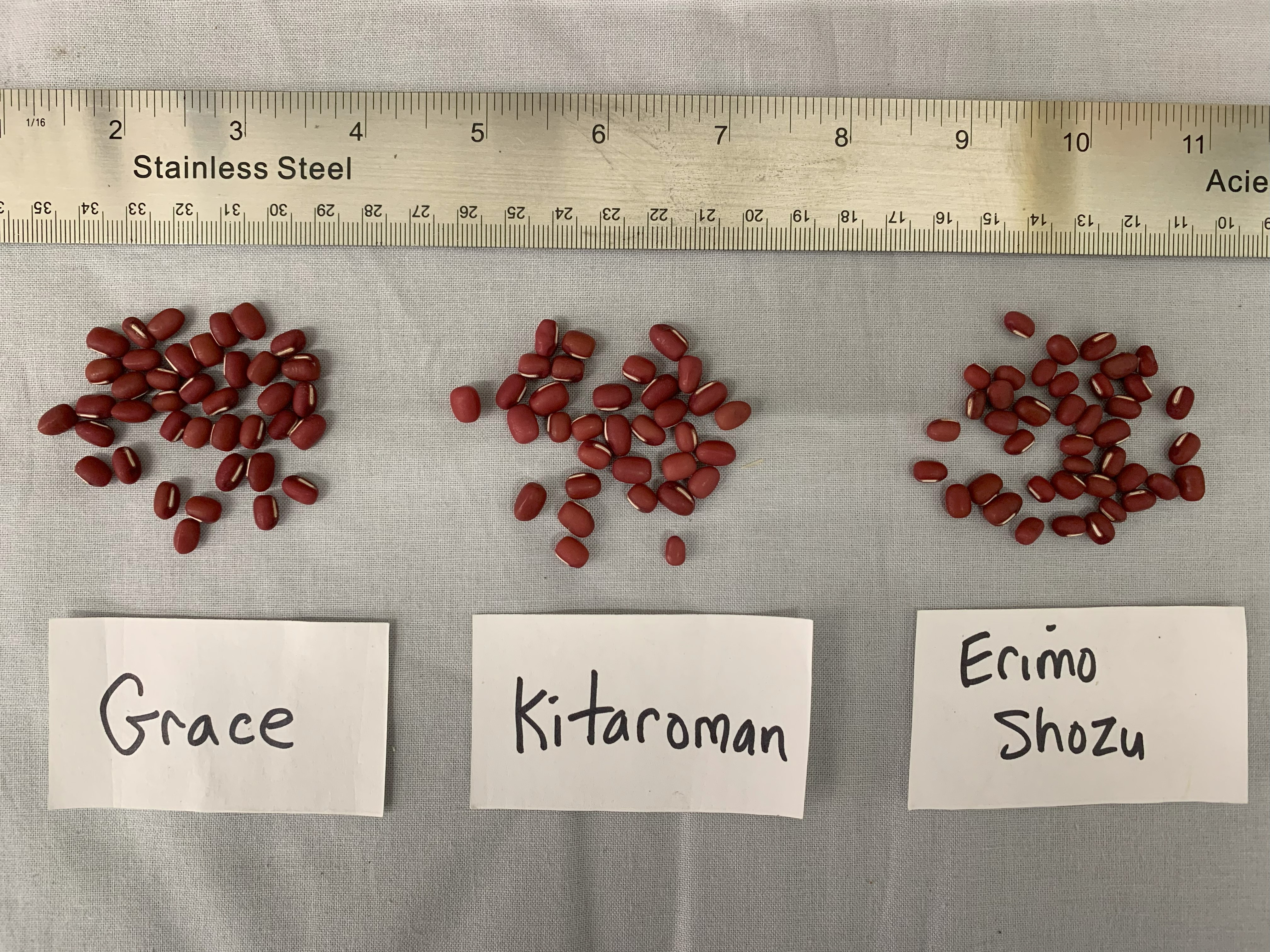 Bean: Grace' (left) with reference varieties Kitaroman' (centre) and Erimo Shozu' (right)