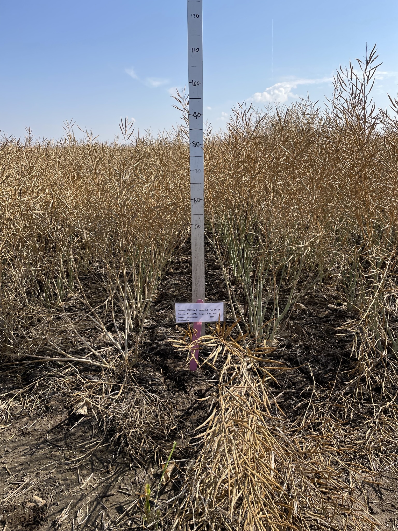 Tests & Trials: The comparative trials for 4PVHL21R' were conducted during the 2022 and 2023 growing seasons in Saskatoon, Saskatchewan. The trial included 3 replicates. The candidate and reference variety were sown side by side in the first replicate whereas varieties in the second and third replicate were completely randomized. The plots consisted of 2 rows that were 3 metres in length with spacing of 50 cm between rows. The planting density of 26 seeds per metre resulted in a total of 468 plants per variety per year. The measured characteristics were based on 30 measurements per variety per year except for silique characteristics which were based on 60 measurements per variety per year. Mean differences were significant at the 2% probability level based on LSD values.