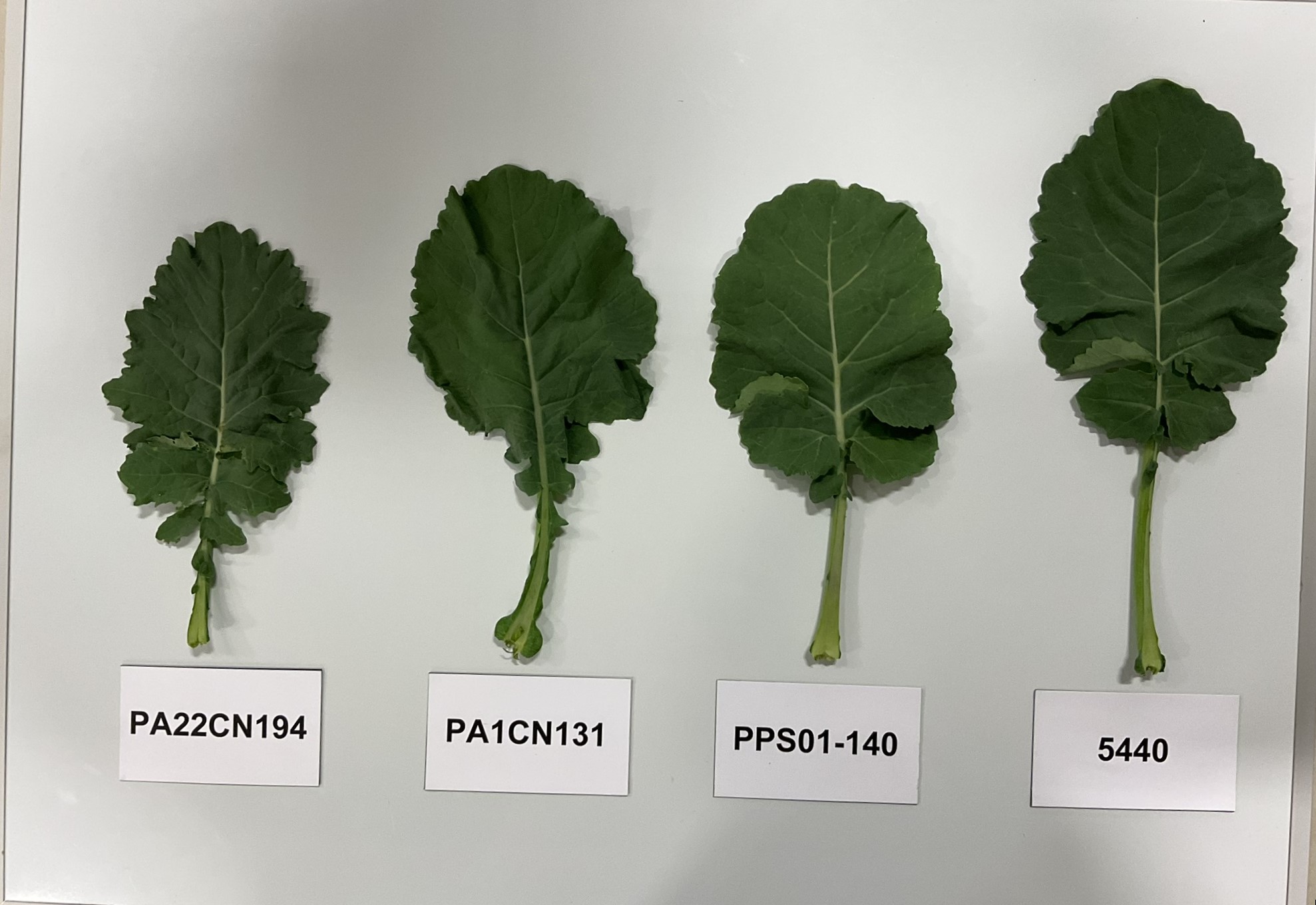Canola: PA22CN194' (left) with reference varieties PA1CN131' (centre left), PPS01-140 A-Line' (centre right) and 5440' (right)