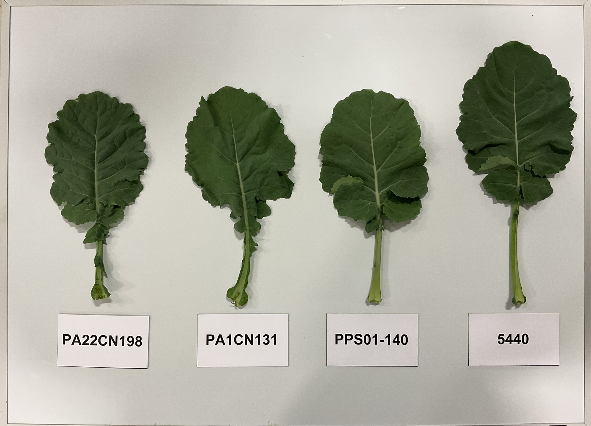 Canola: PA22CN198' (left) with reference varieties PA1CN131' (centre left), PPS01-140 A-Line' (centre right) and 5440' (right)