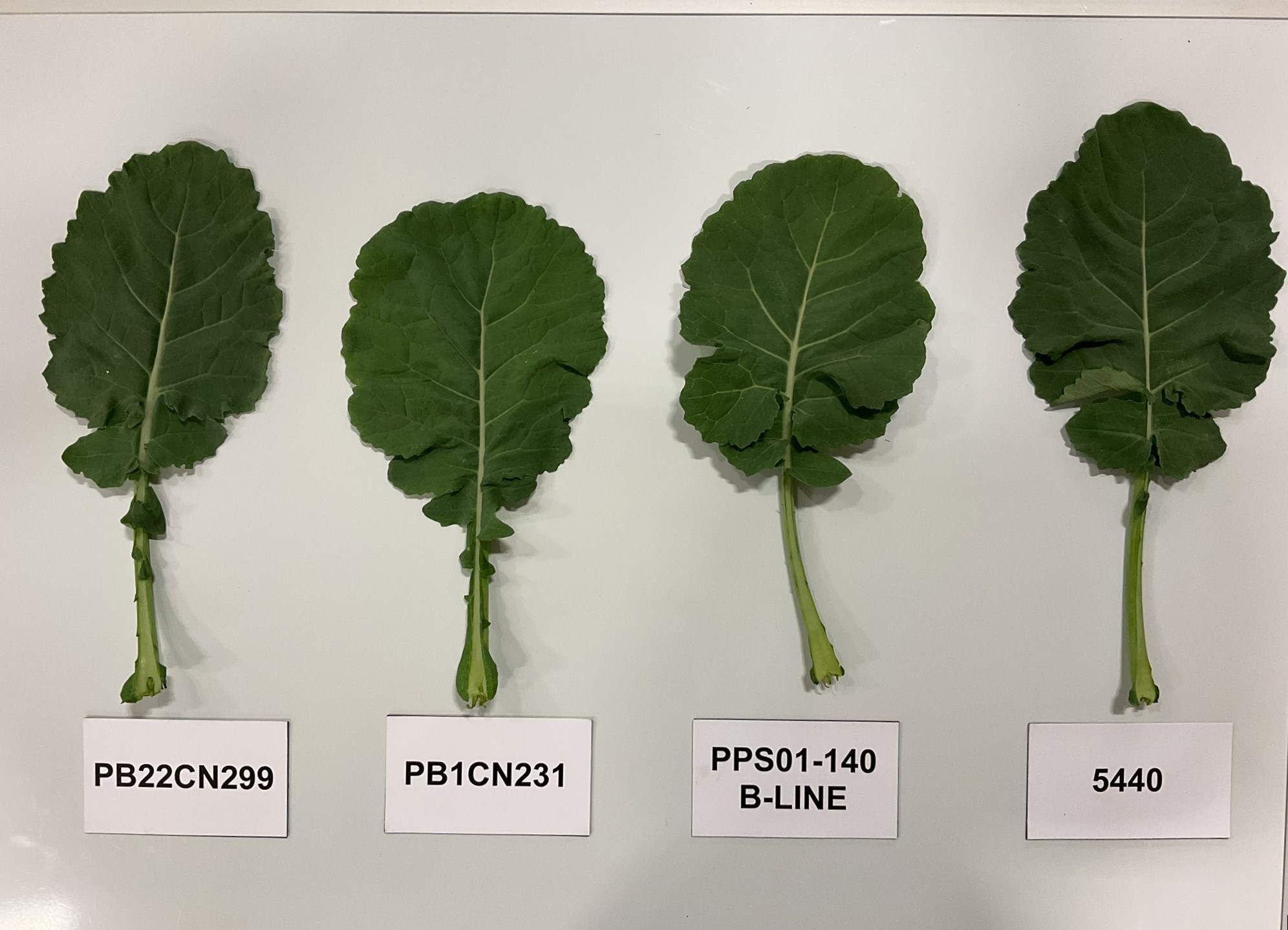 Canola: PB22CN299' (left) with reference varieties PB1CN231' (centre left), PPS01-140 B-Line' (centre right) and 5440' (right)