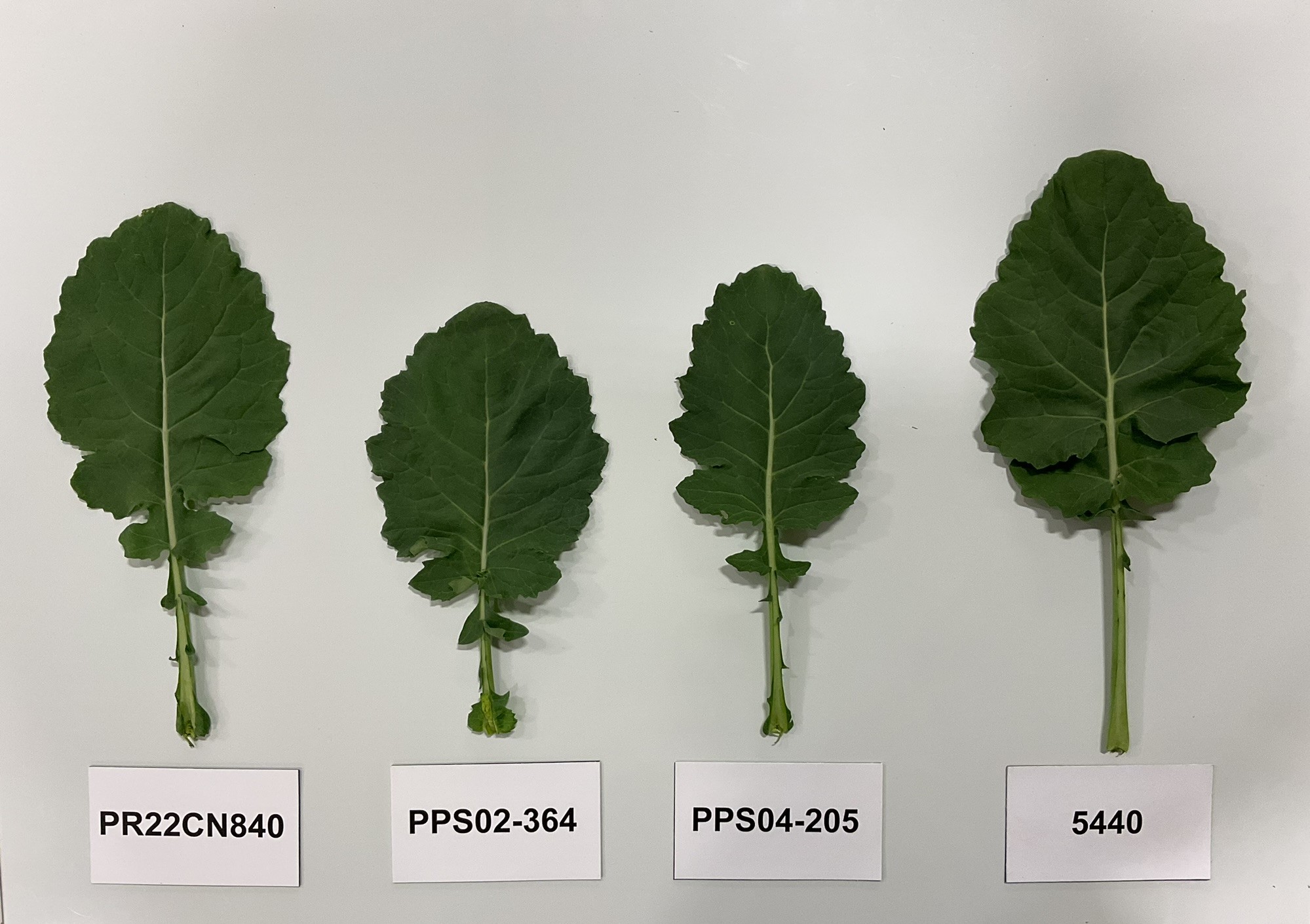 Canola: PR22CN840' (left) with reference varieties PPS02-364' (centre left), PPS04-205' (centre right) and 5440' (right)