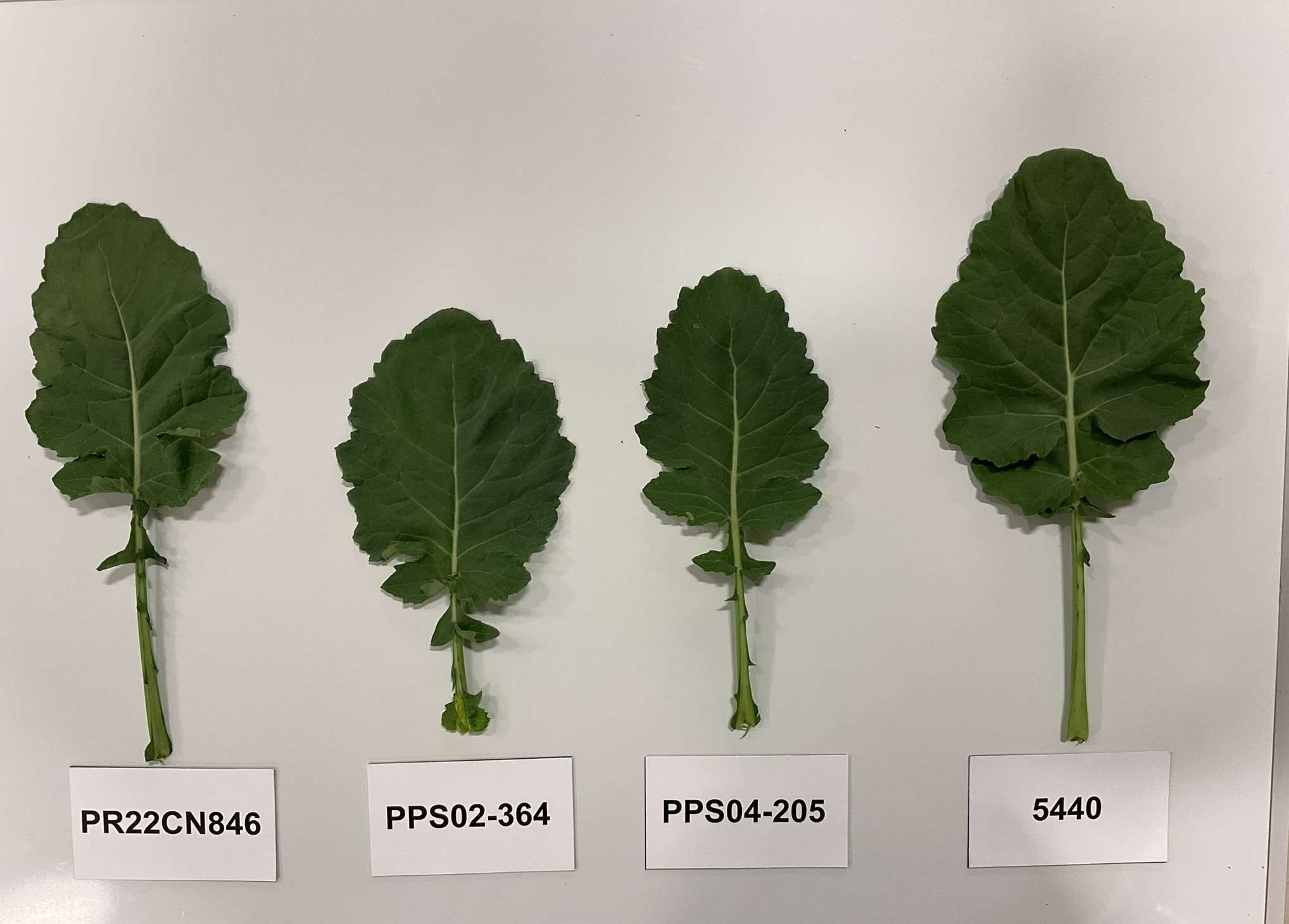 Canola: PR22CN846' (left) with reference varieties PPS02-364' (centre left), PPS04-205' (centre right) and 5440' (right)