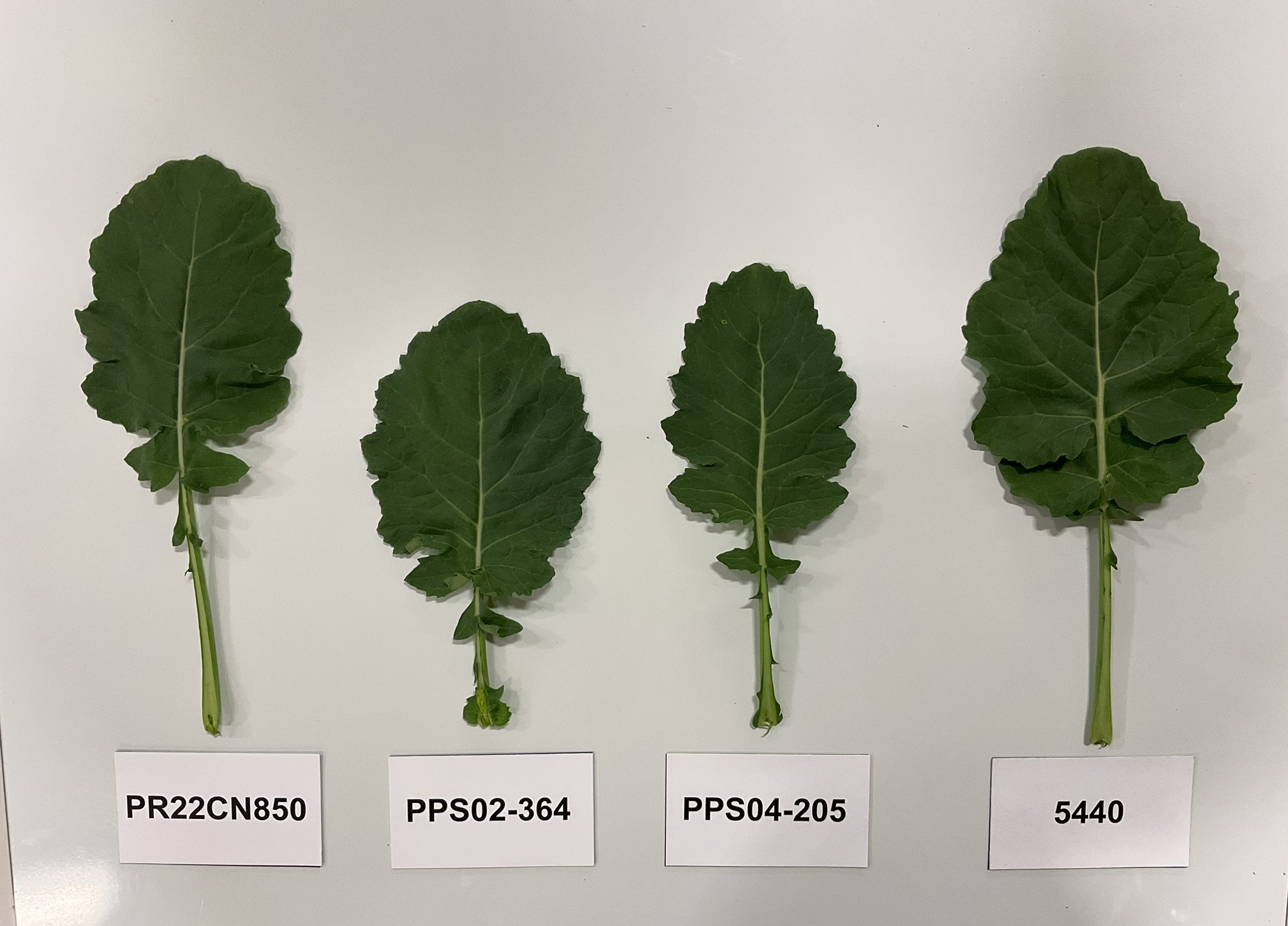 Canola: PR22CN850' (left) with reference varieties PPS02-364' (centre left), PPS04-205' (centre right) and 5440' (right)