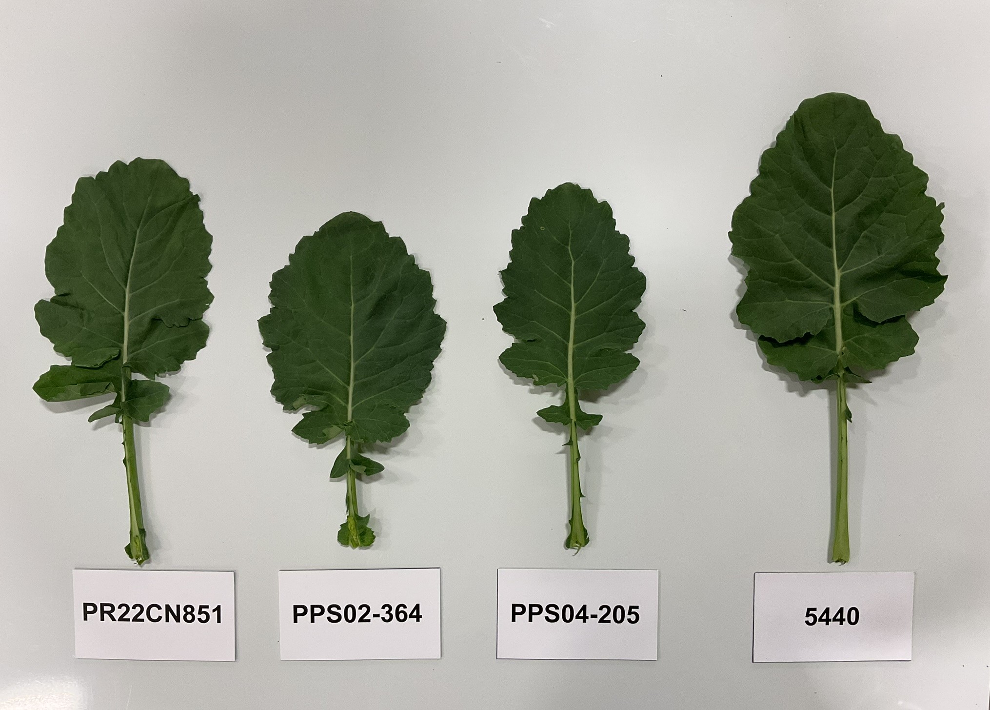 Canola: PR22CN851' (left) with reference varieties PPS02-364' (centre left), PPS04-205' (centre right) and 5440' (right)