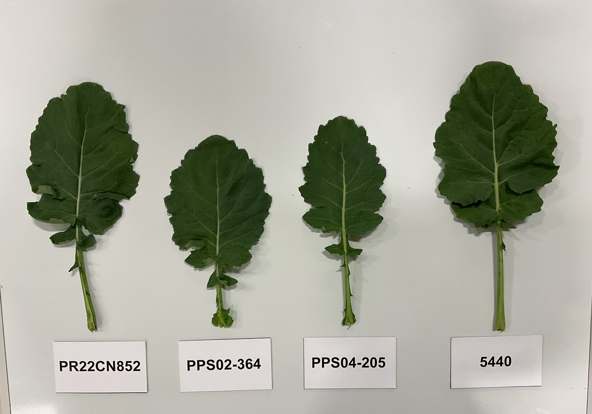 Canola: PR22CN852' (left) with reference varieties PPS02-364' (centre left), PPS04-205' (centre right) and 5440' (right)
