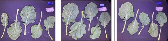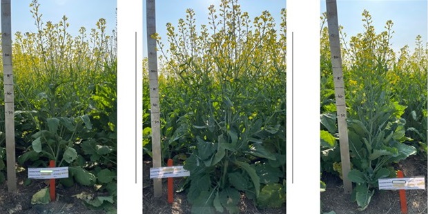 Canola: 3MB0K8NH' (left) with reference varieties G00010BC' (centre) and 3MB07TNH' (right)