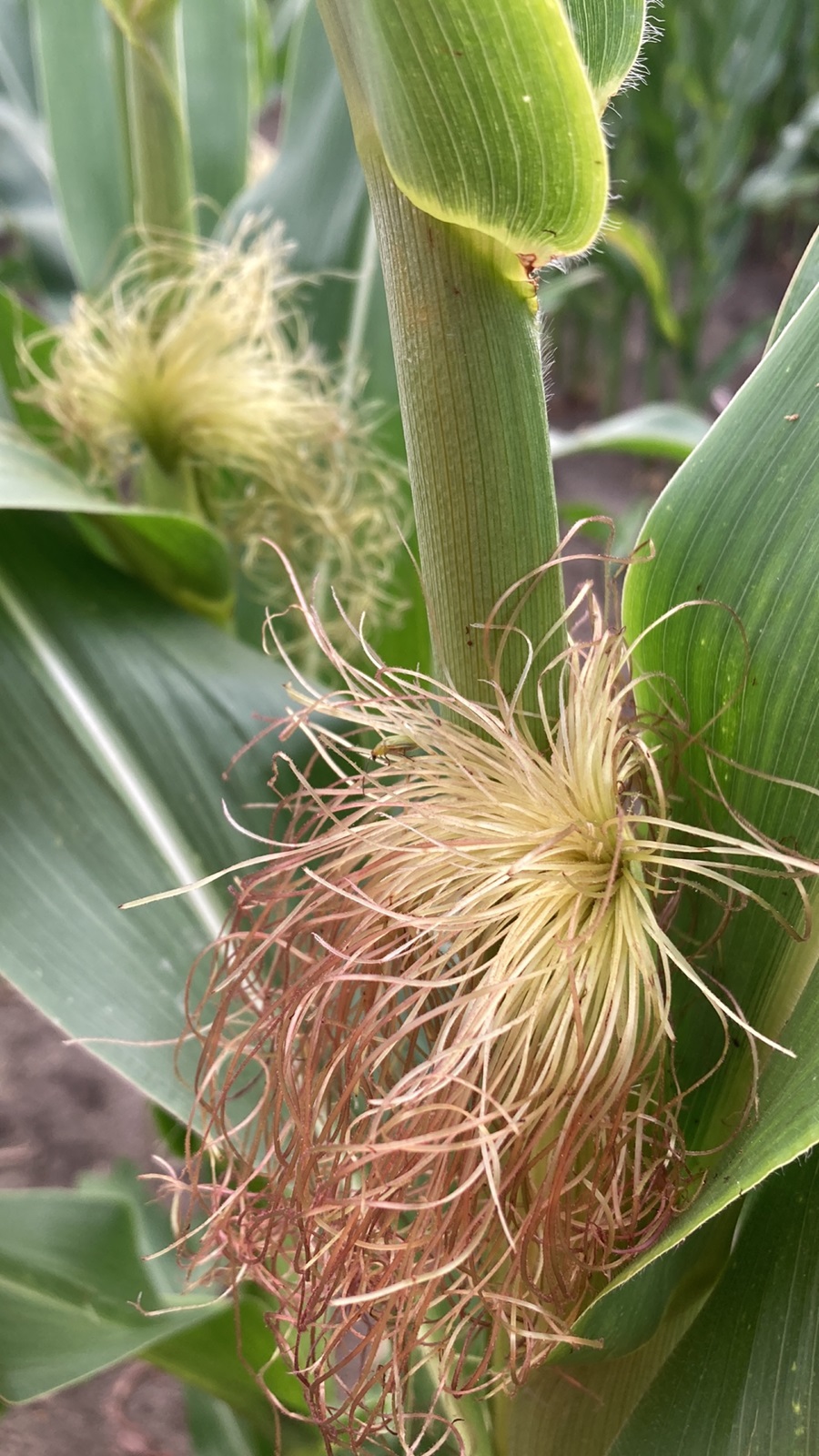 EAR: weak intensity of anthocyanin colouration of silks, conico-cylindrical shape, very many rows of grain, absent or very weak intensity of anthocyanin colouration on glumes of cob