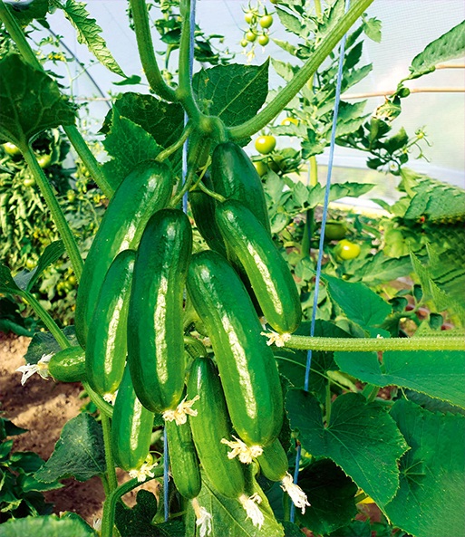 PLANT: Beth Alpha type fruit, gynoecious sex expression, predominantly more than five female flowers per node, parthenocarpy present, indeterminate growth type, first 15 internodes are very short to short