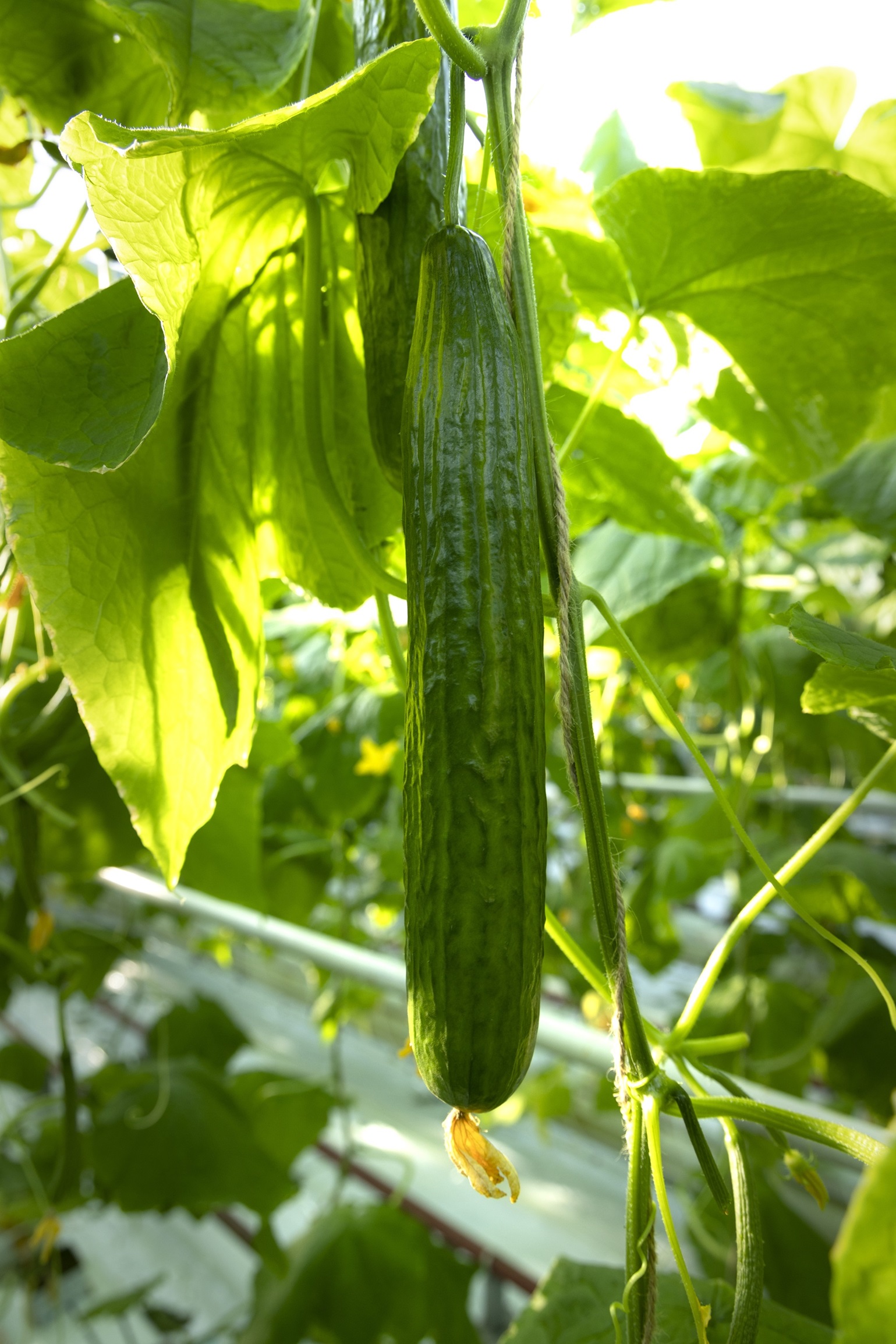 PLANT: produces Dutch type fruit, gynoecious sex expression, predominantly one or two female flowers per node, parthenocarpy present, indeterminate growth type, first 15 internodes are long