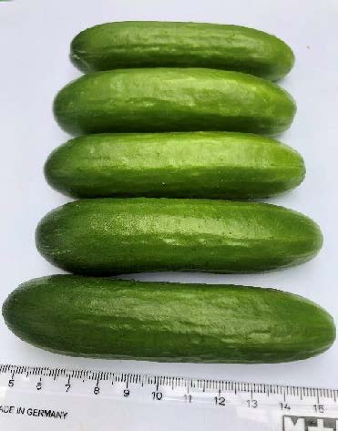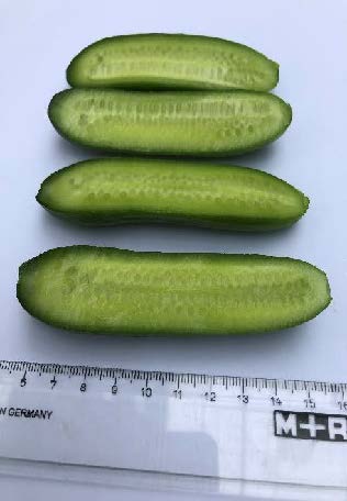 DISEASE REACTIONS: resistance to Cladosporium cucumerinum (Ccu) and Cucumber Vein Yellowing Virus (CVYV) present; highly resistant to Cucumber Mosaic Virus (CMV) and powdery mildew (Podosphaera xanthii) (Px); no resistance to Corynespora blight and Target leaf spot (Corynespora cassiicola) (Cca)