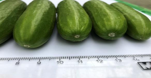 PLANT: produces Beth Alpha type fruit, gynoecious sex expression, predominantly three or four female flowers per node, parthenocarpy present, indeterminate growth type, first 15 internodes are short to medium length