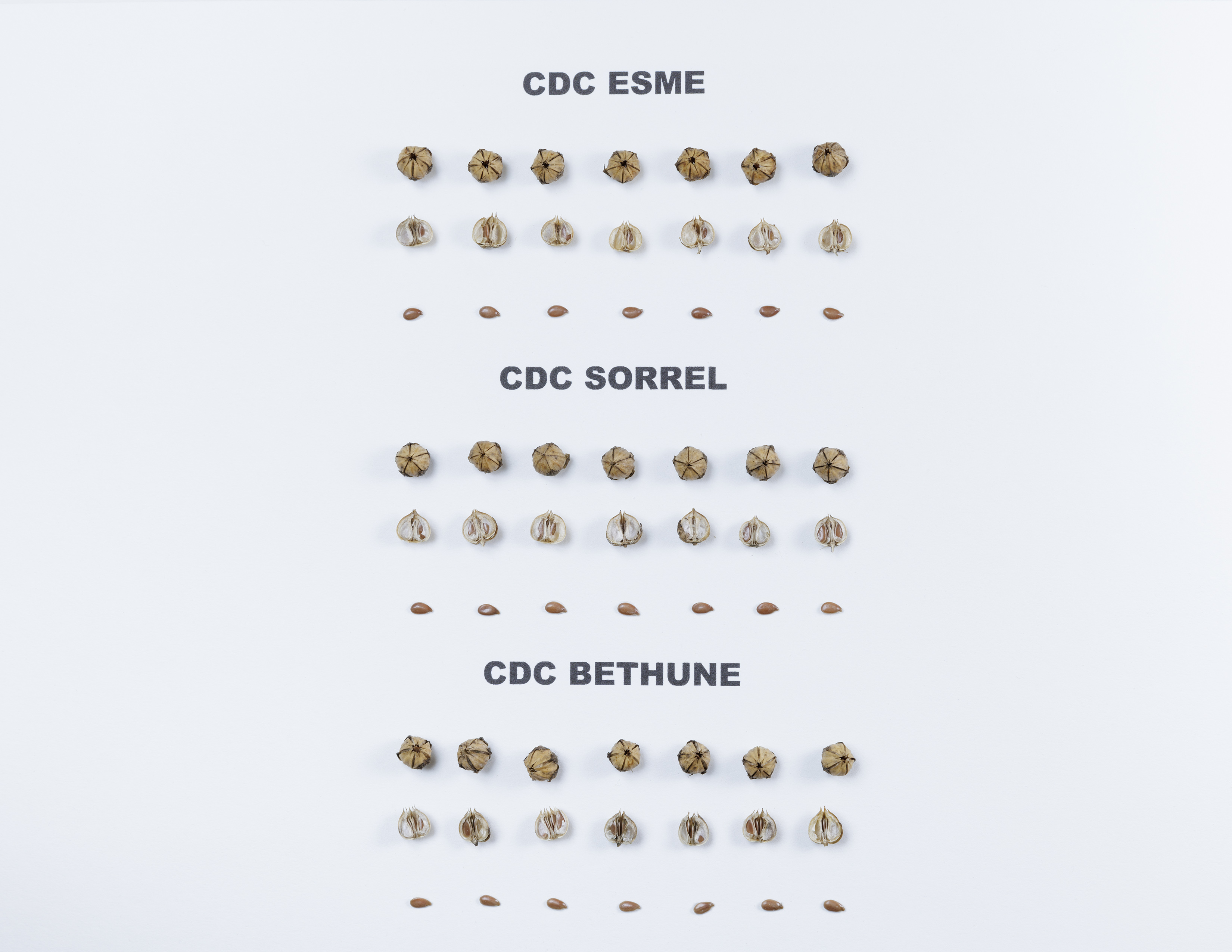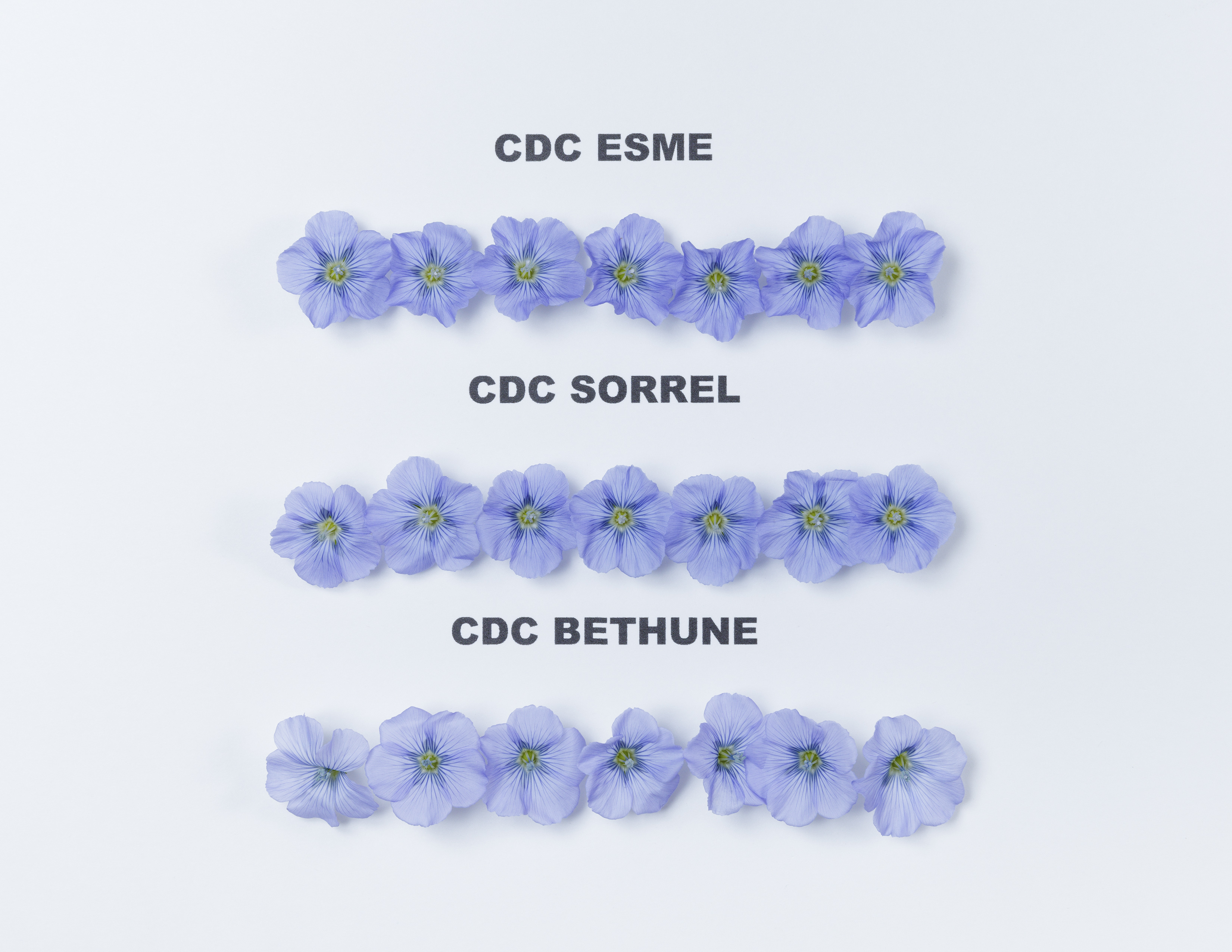 Flax: 'CDC Esme' (top) with reference varieties 'CDC Sorrel' (centre) and 'CDC Bethune' (bottom)