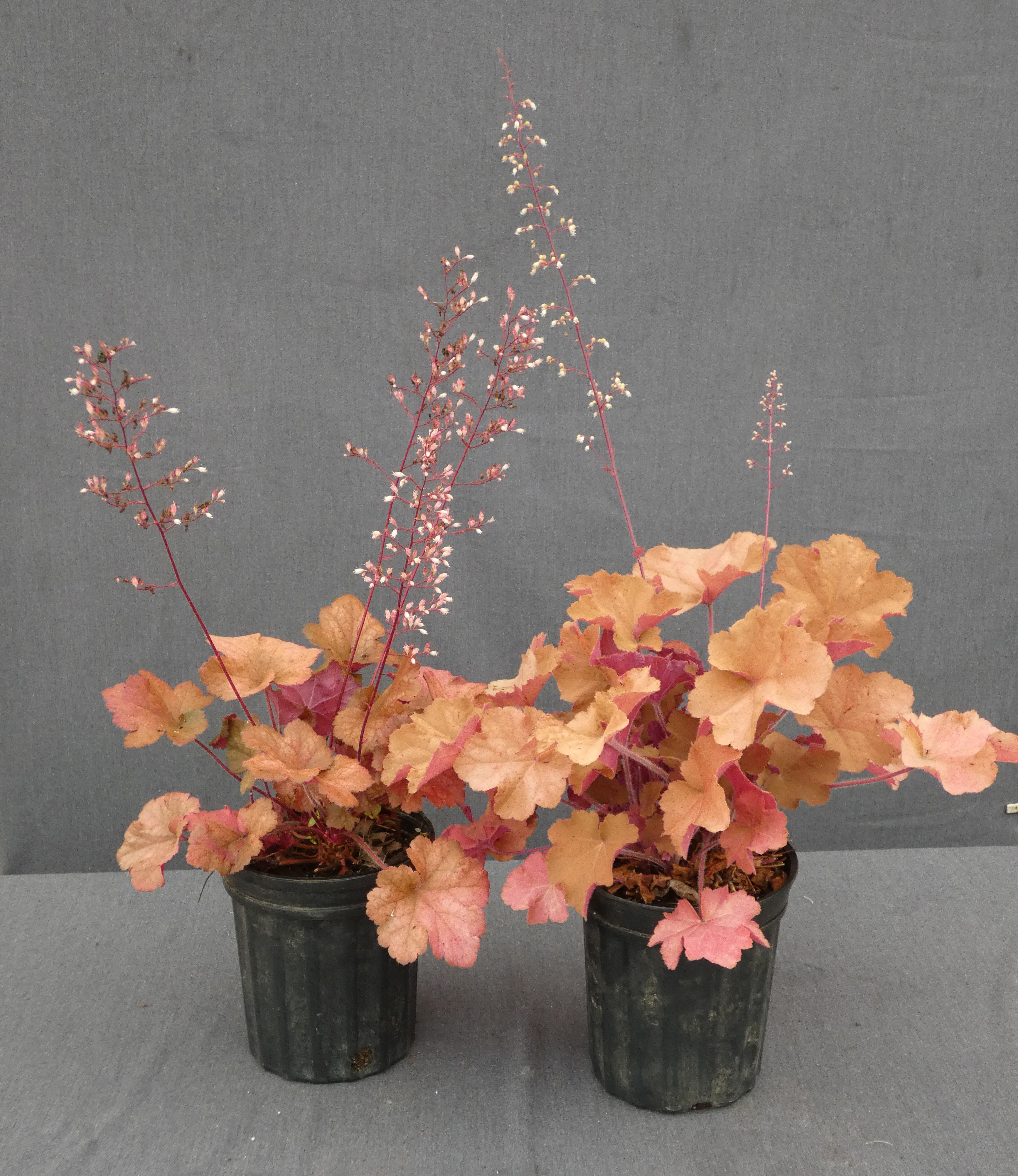 Heuchera: 'Toffee Tart' (left) with reference variety 'Caramel' (right)
