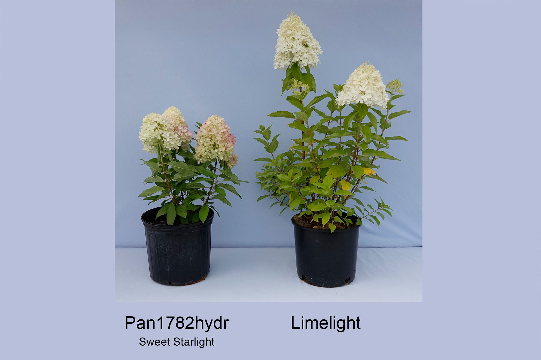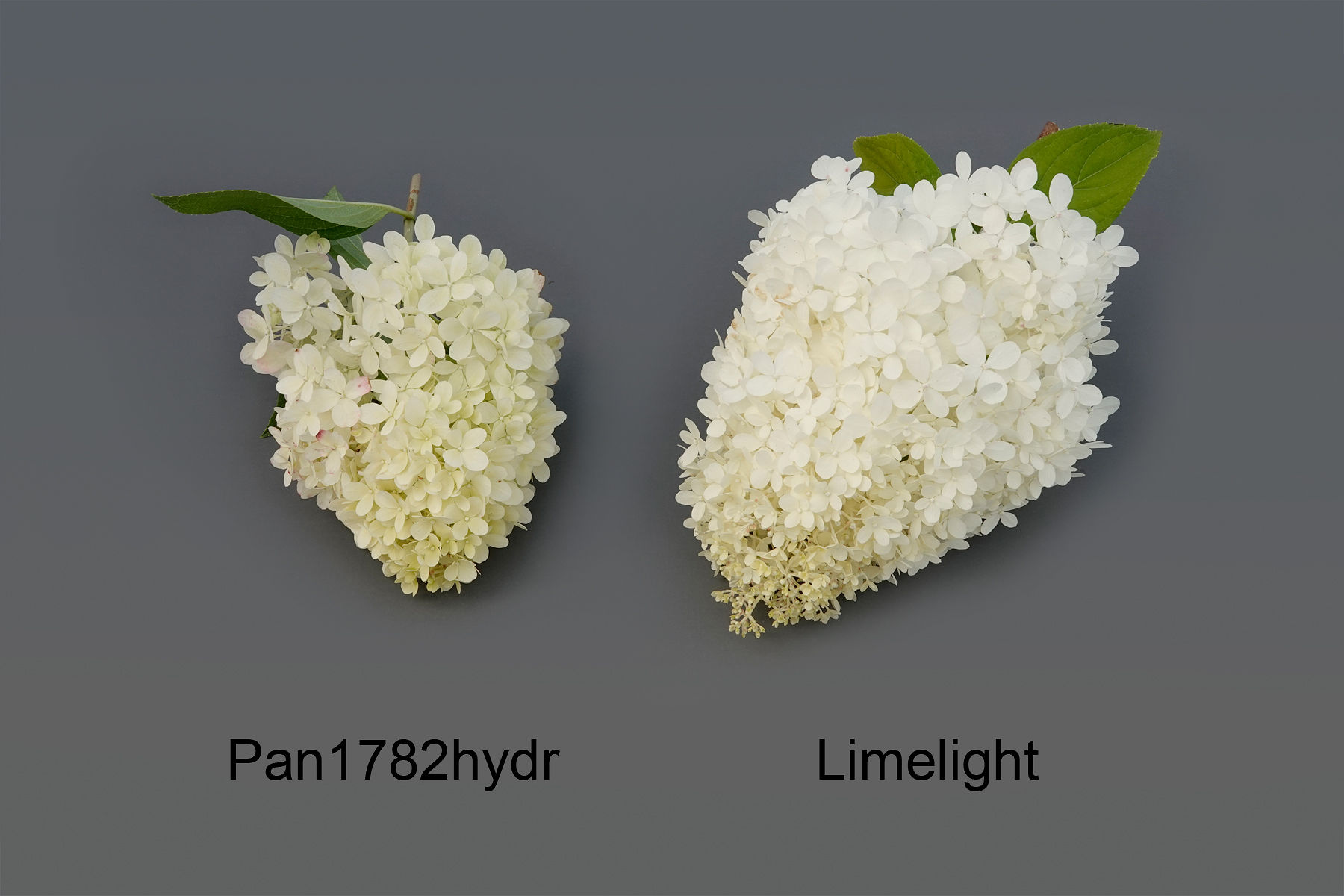 Hydrangea: 'Pan1782hydr' (left) with reference variety 'Limelight' (right)