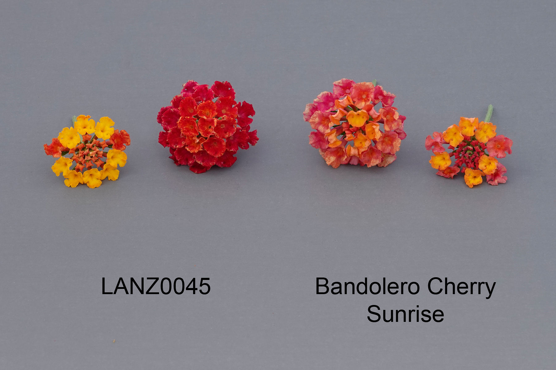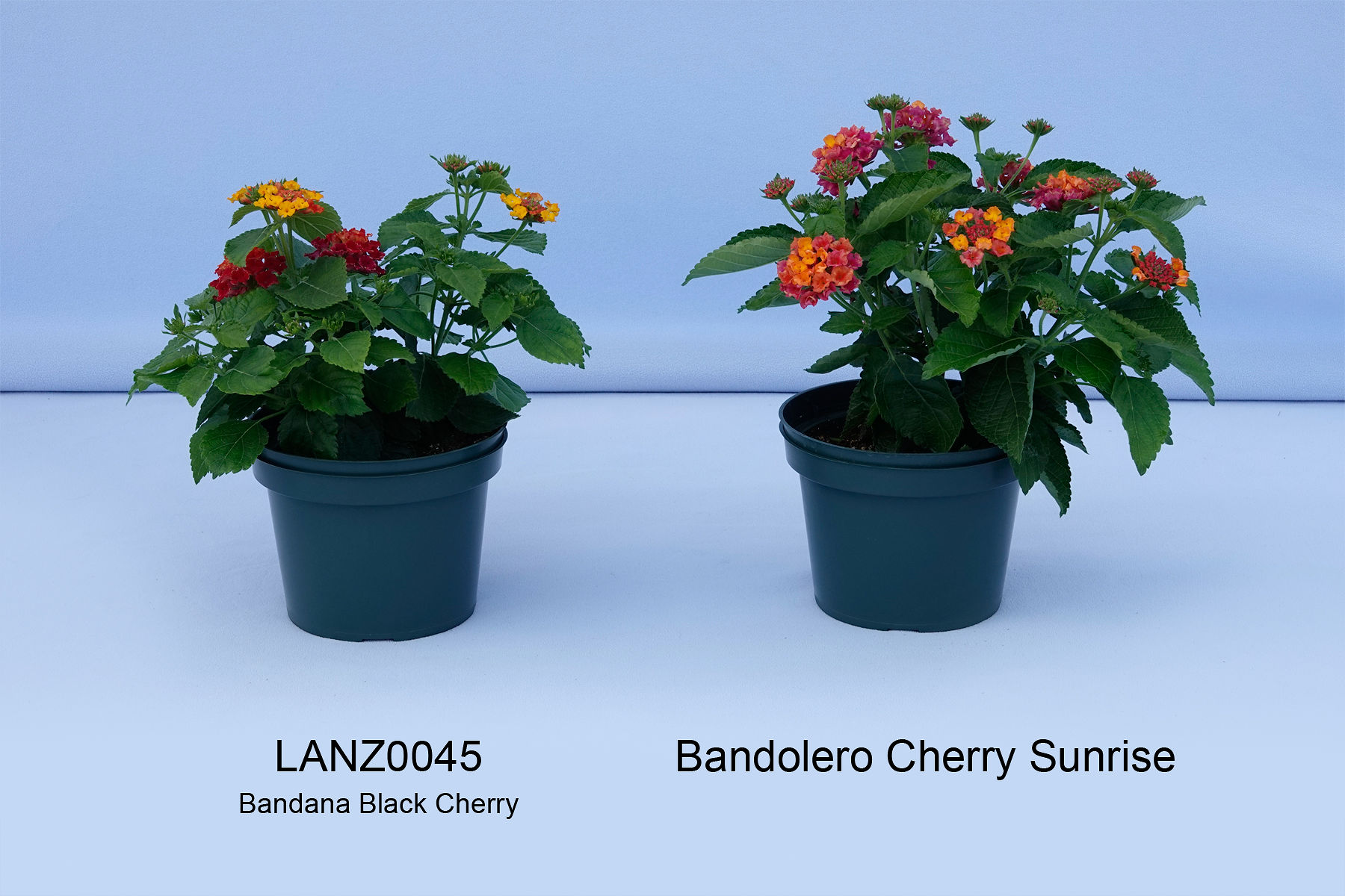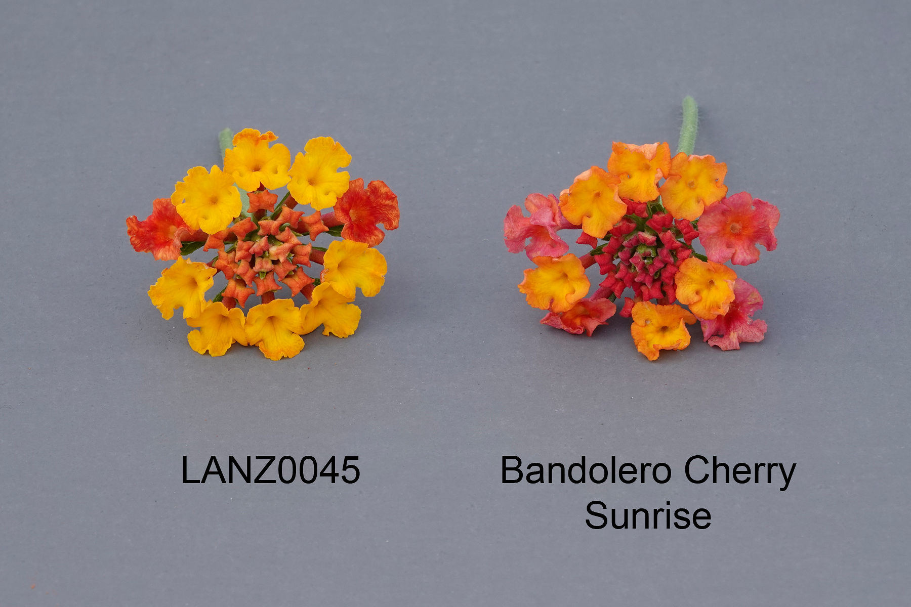 Lantana: 'LANZ0045' (left) with reference variety 'Bandolero Cherry Sunrise' (right)