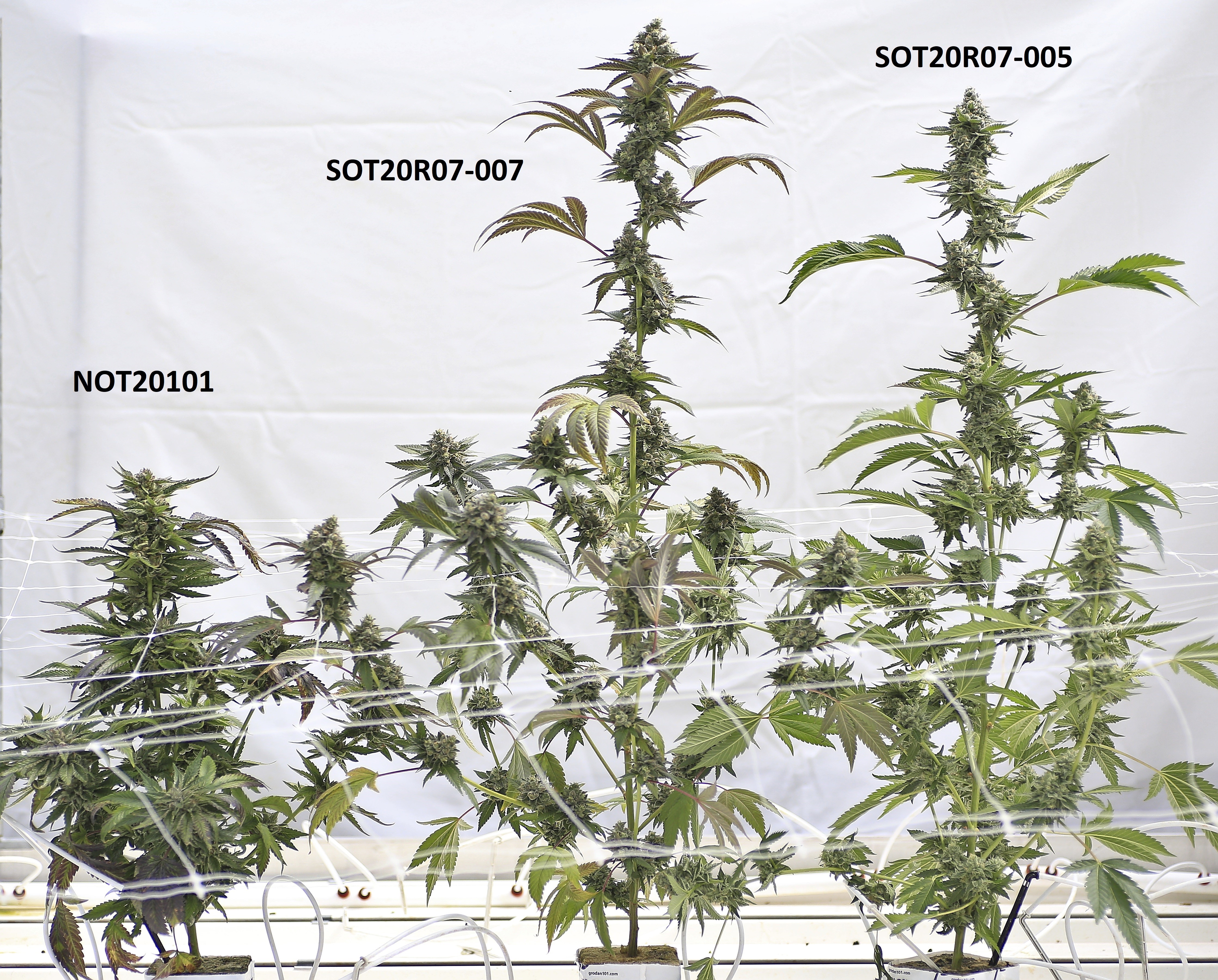 Cannabis: 'SOT20R07-007' (centre) with reference varieties 'NOT20101' (left) and 'SOT20R07-005' (right)
