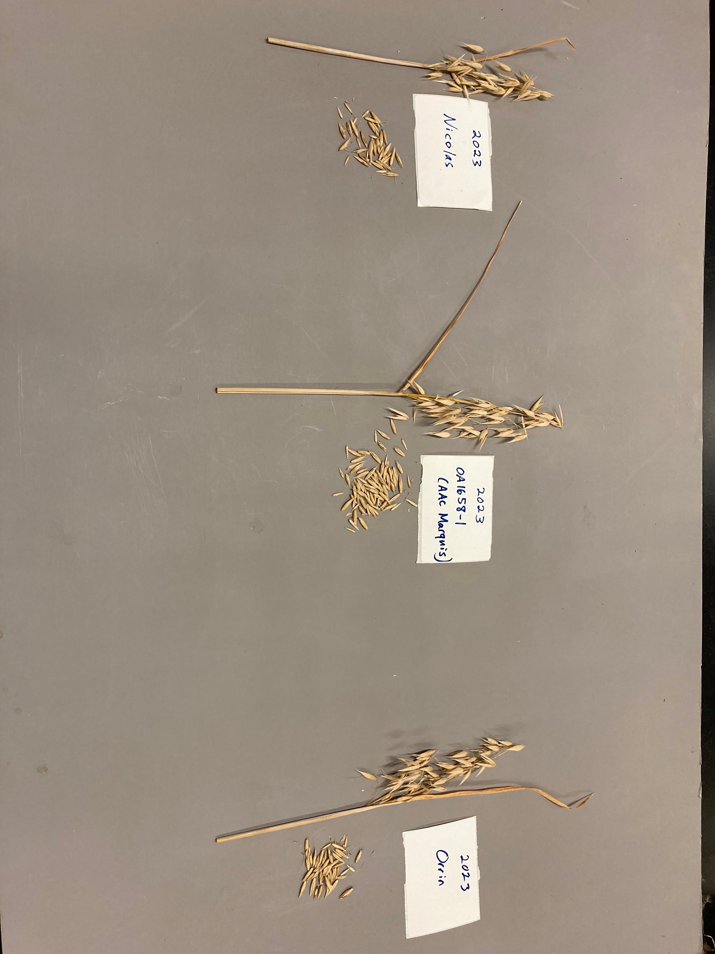 Oat: 'AAC Marquis' (centre) with reference varieties 'AAC Nicolas' (left) and 'CDC Orrin' (right)