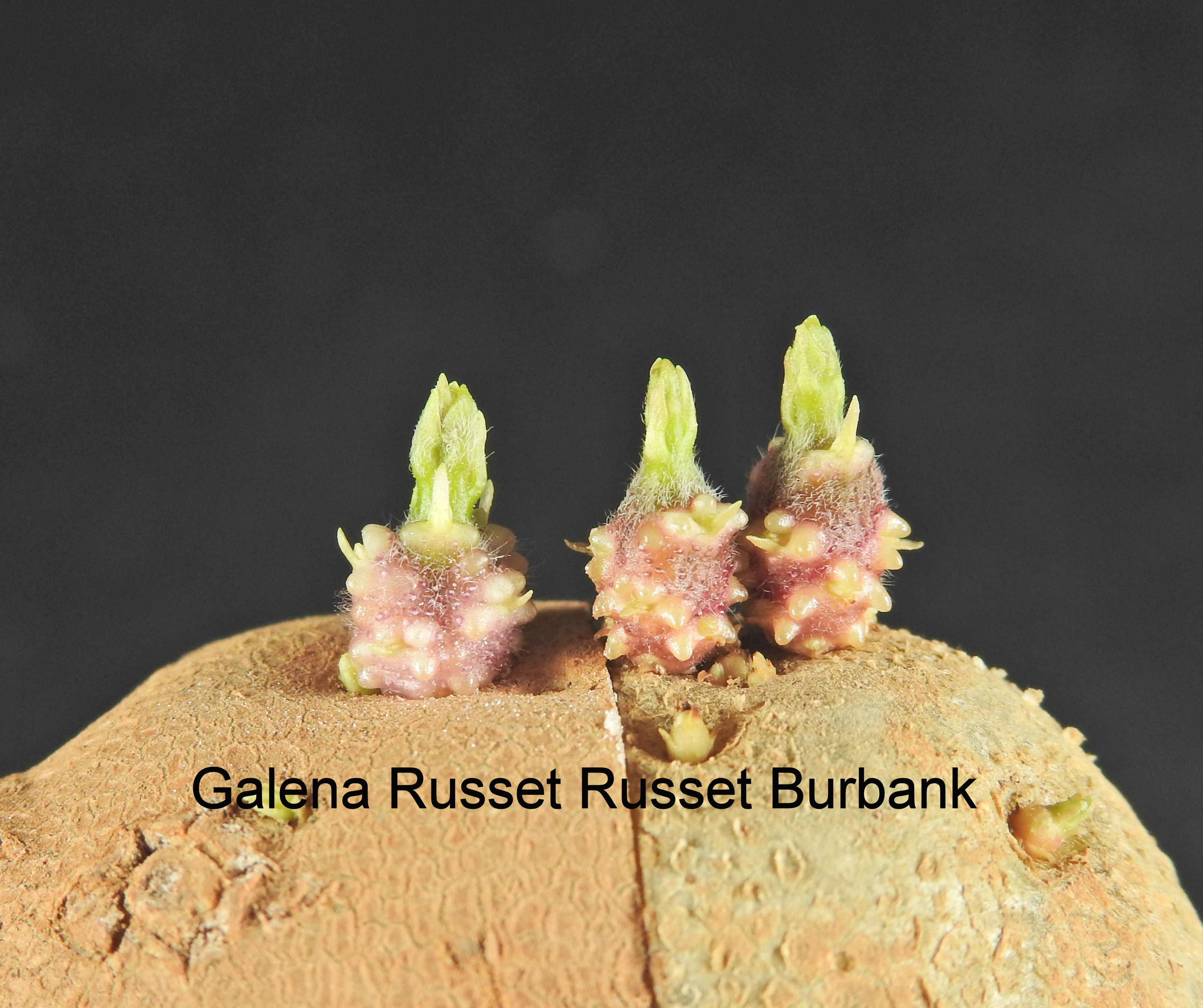 Summary: The apex of the lightsprout of Galena Russet' has a medium density of pubescence while that of Russet Burbank' has sparse pubescence. The plants of Galena Russet' have an upright growth habit while those of Russet Burbank' have a semi-upright to spreading growth habit. The plants of Galena Russet' are shorter than those of Russet Burbank'. The second pair of lateral leaflets of Galena Russet' are very narrow to narrow in relation to length while those of Russet Burbank' are of a medium width in relation to length. The flower bud of Galena Russet' has an absent or very weak intensity of anthocyanin colouration while that of Russet Burbank' has a weak intensity of anthocyanin colouration. The inflorescence of Galena Russet' is medium sized while that of Russet Burbank' is small. The corolla of Galena Russet' has a medium to large diameter while that of Russet Burbank' has a small diameter. The tuber of Galena Russet' is long-oval in form while that of Russet Burbank' is long.