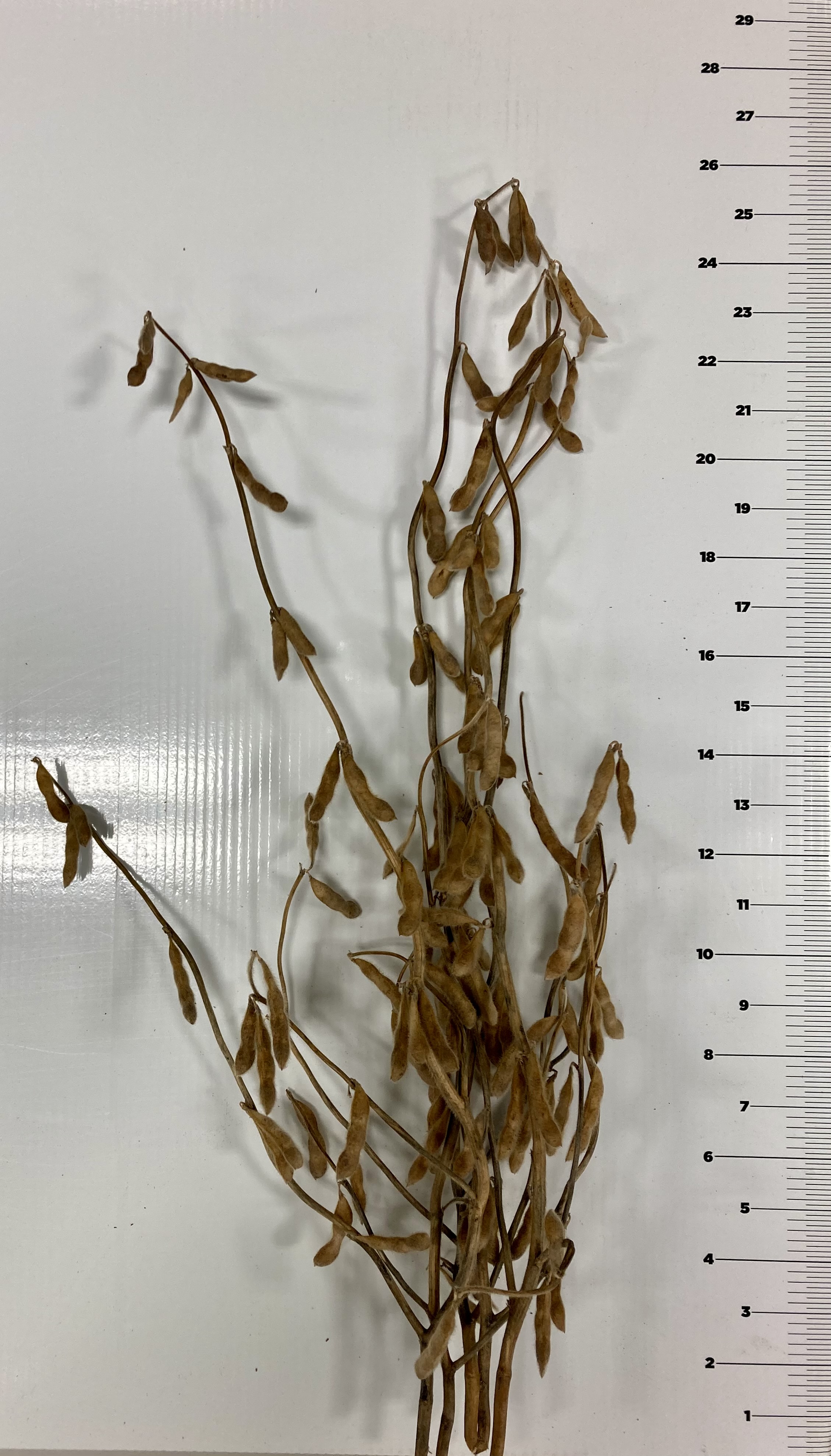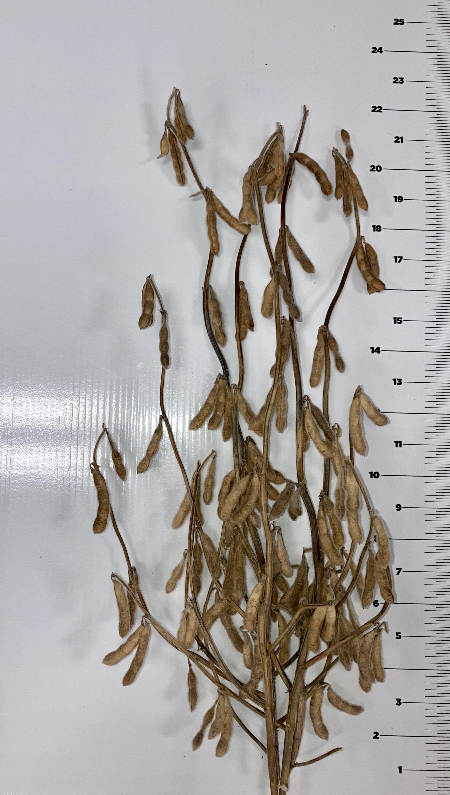 PLANT: indeterminate growth type, grey pubescence on middle third of main stem, begins flowering and matures late season
