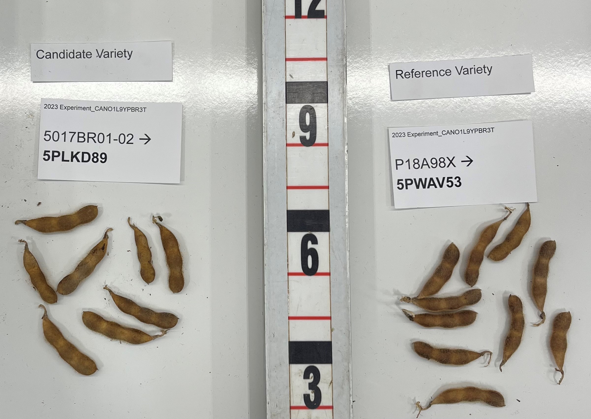 Soybean: '5PLKD89' (left) with reference variety 'P18A98X' (right)