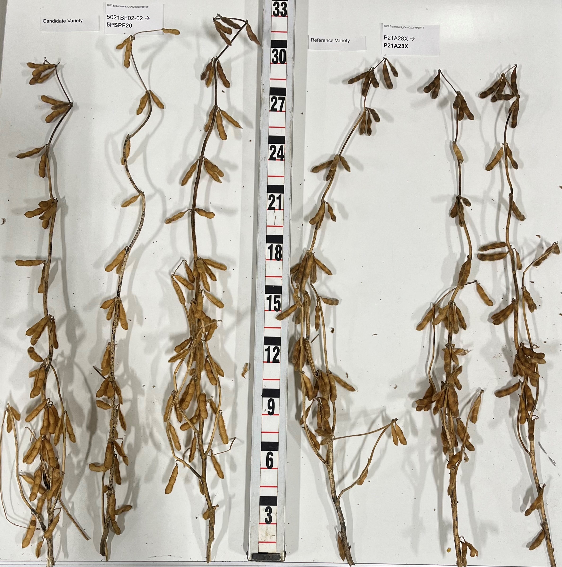Soybean: '5PSPF20' (left) with reference variety 'P21A28X' (right)