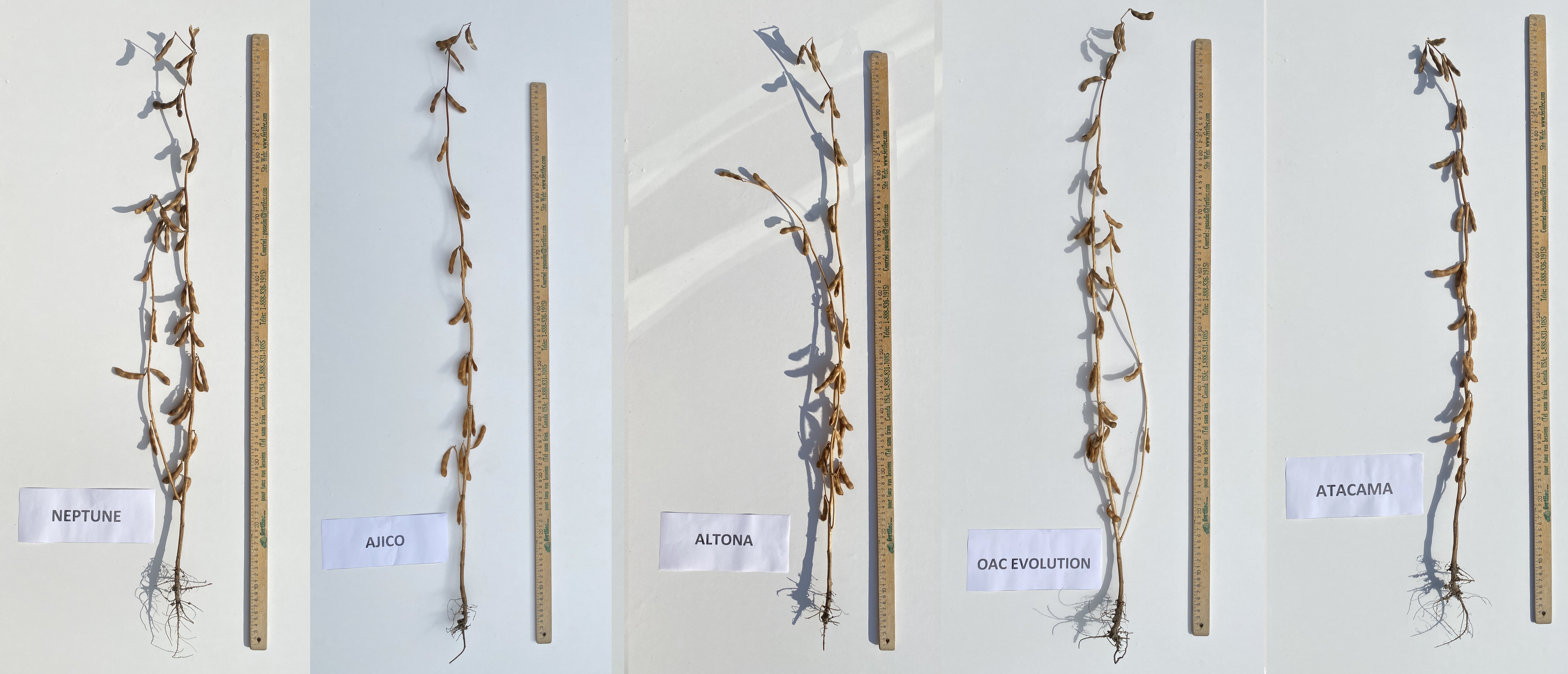 Soybean: Altona' (centre) with reference varieties Neptune' (left), Ajico' (centre left), OAC Evolution' (centre right) and Atacama' (right)