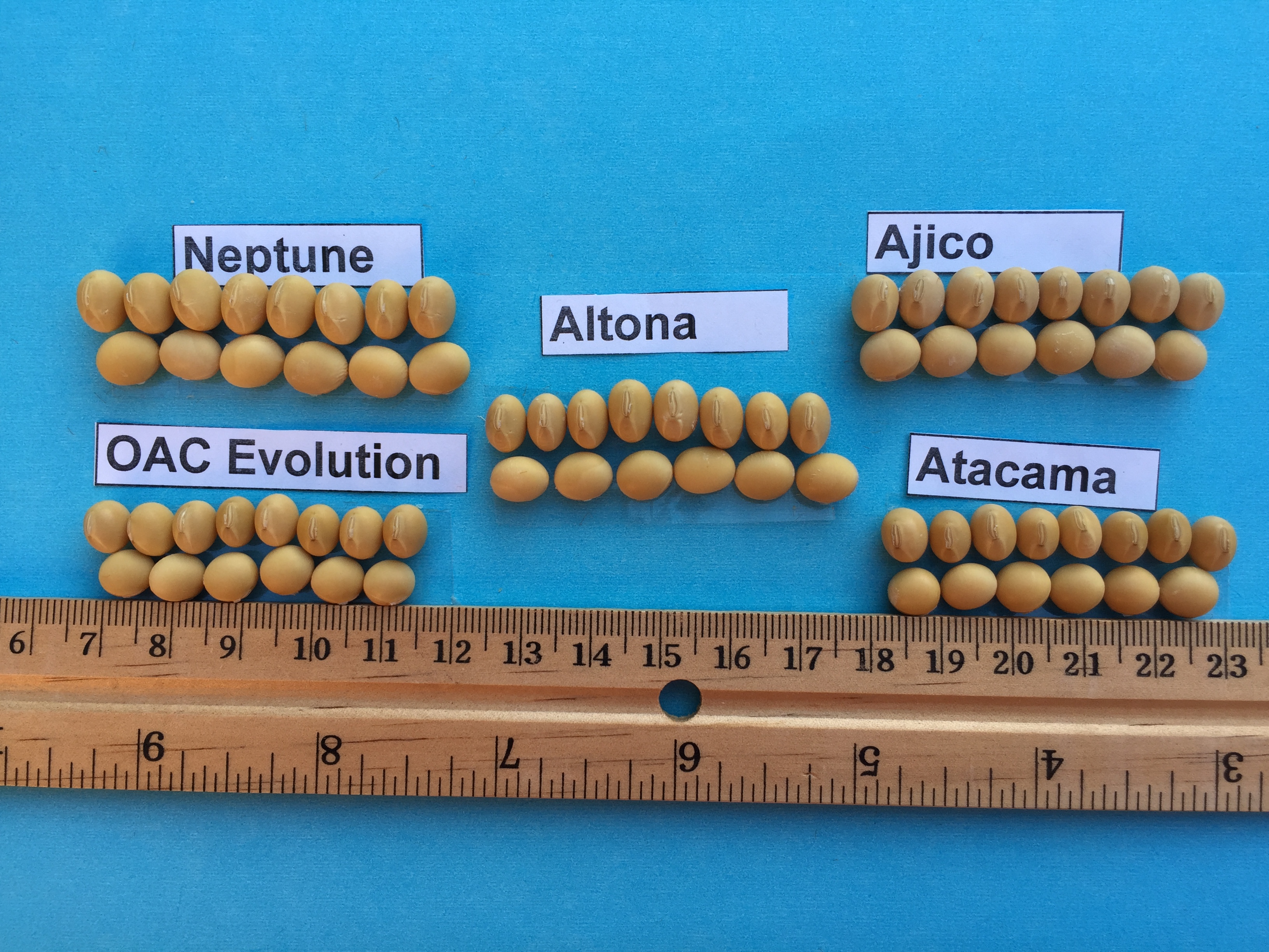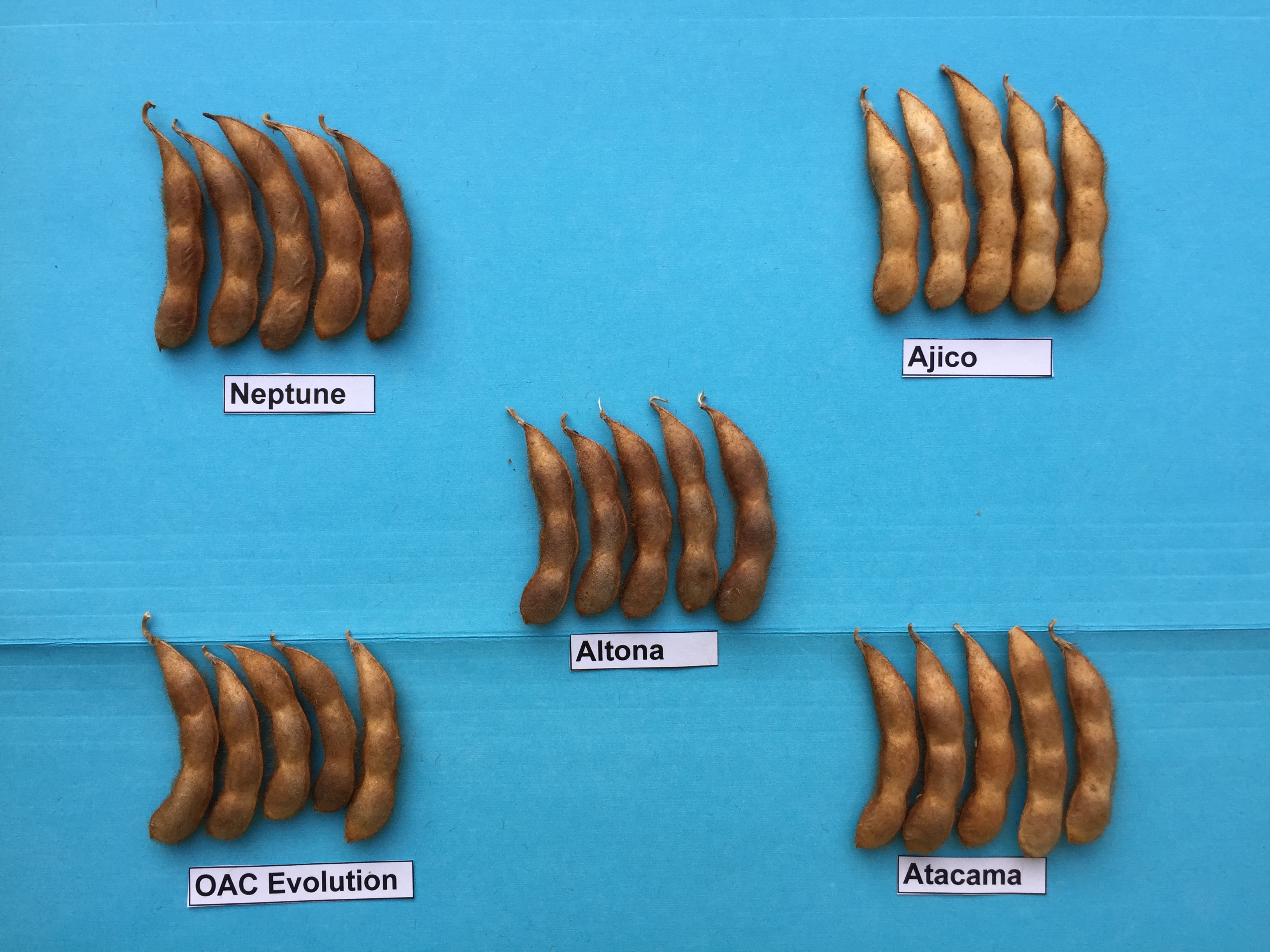 Soybean: Altona' (centre) with reference varieties Neptune' (top left), Ajico' (top right), Atacama' (bottom right) and OAC Evolution' (bottom left)