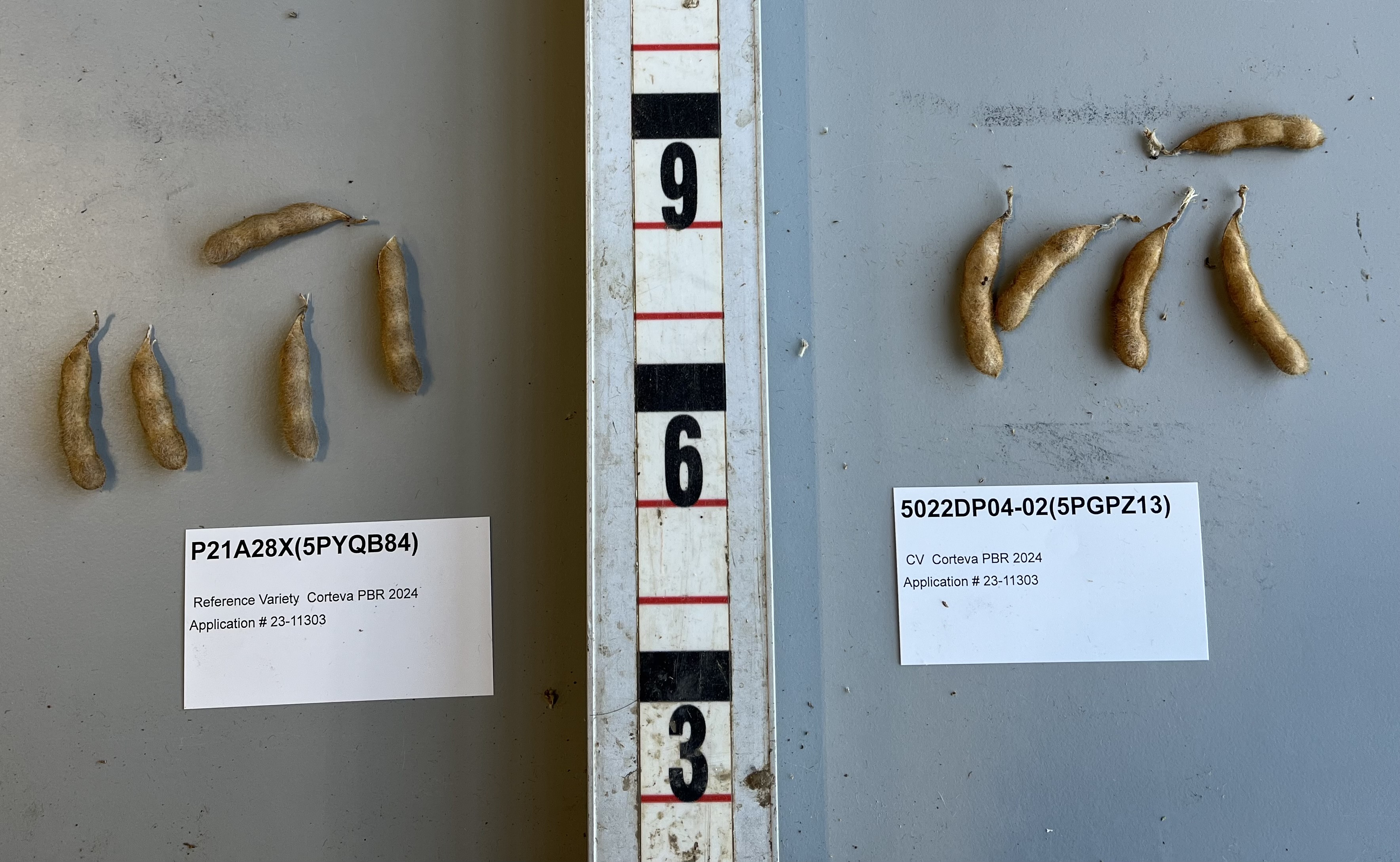 Soybean: P22A67E' (right) with reference variety 'P21A28X' (left)