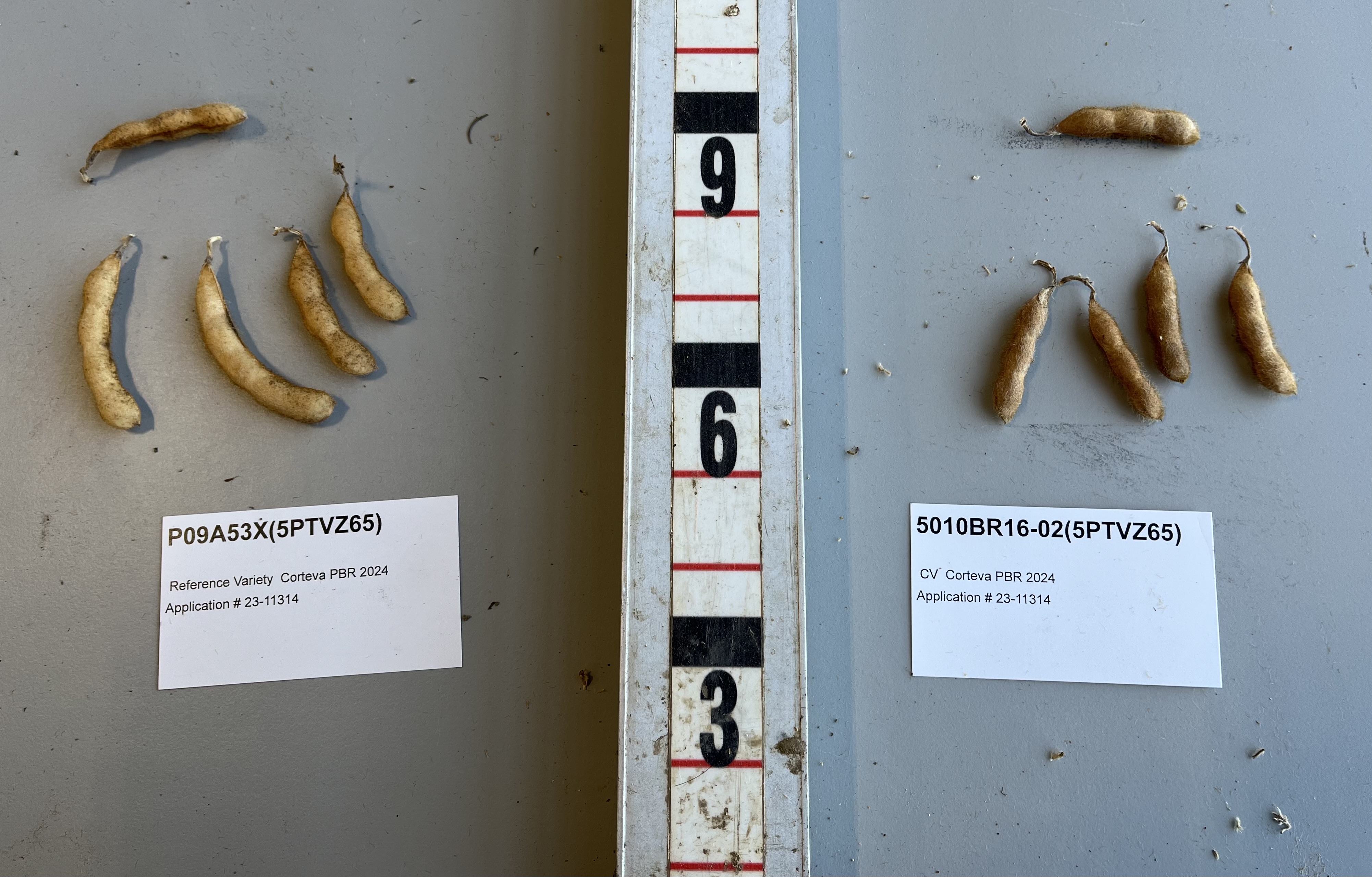 Soybean: 'P08A44E' (right) with reference variety 'P09A53X' (left)