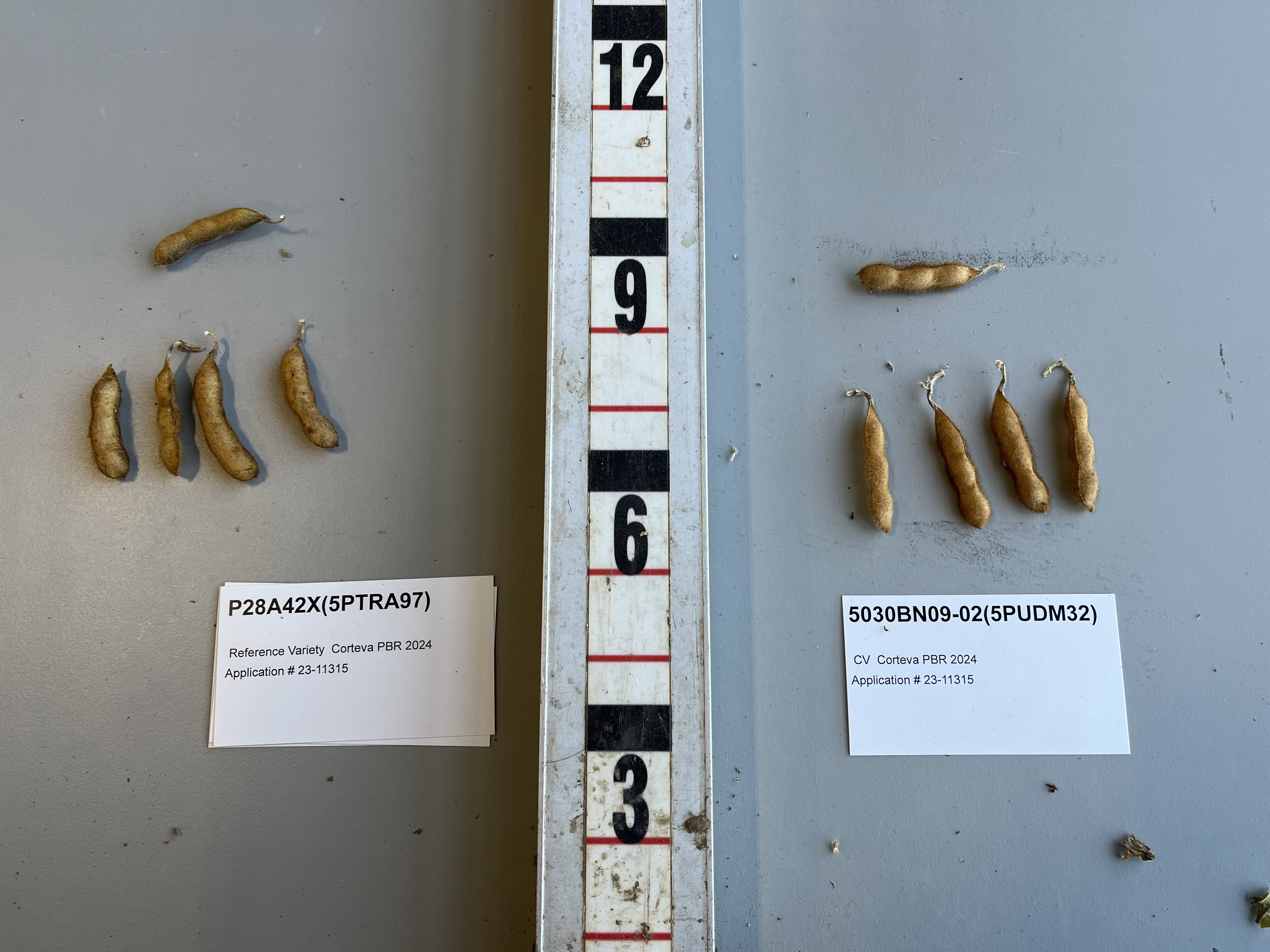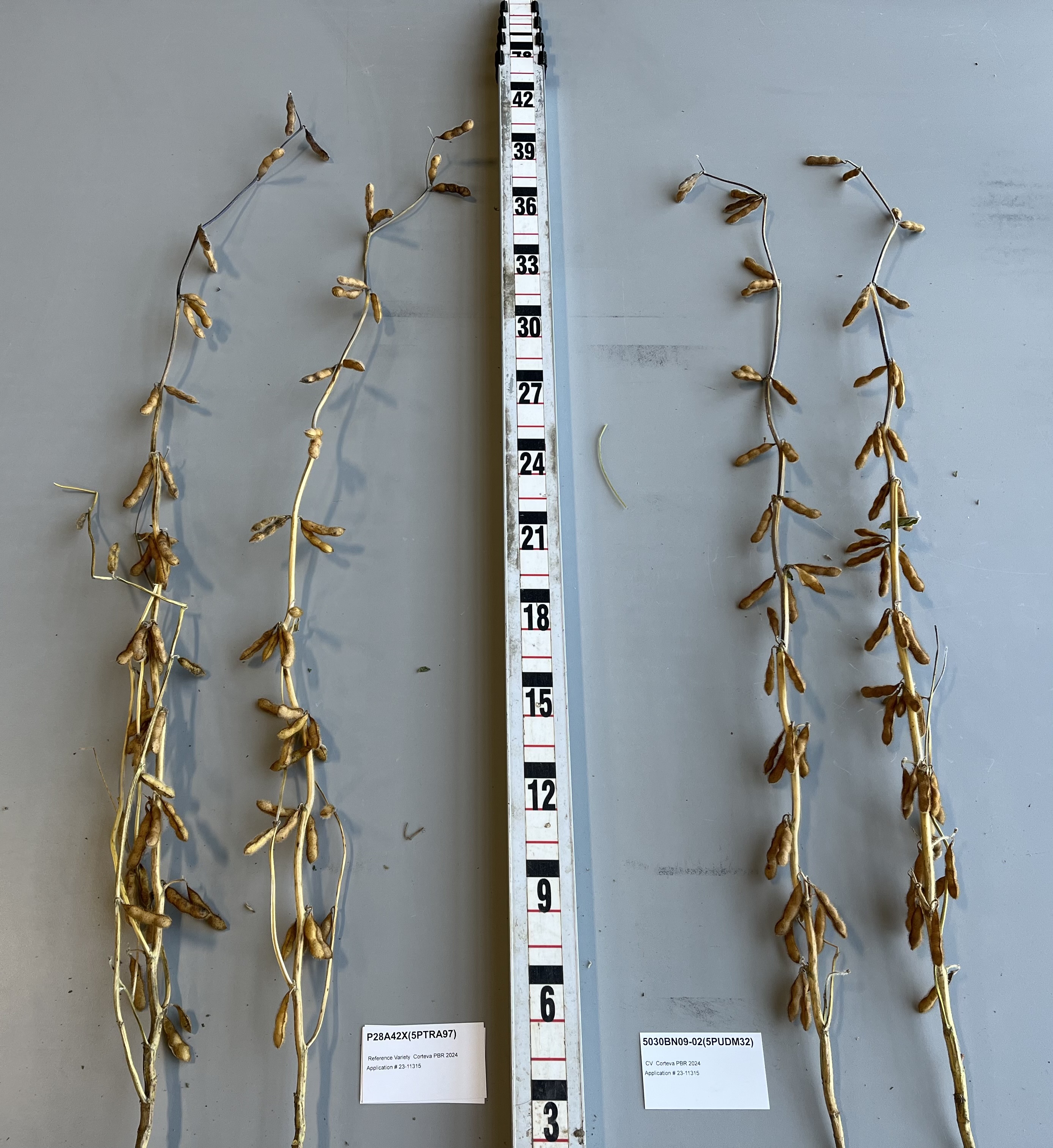 Soybean: 'P30A75E' (right) with reference variety P28A42X' (left)