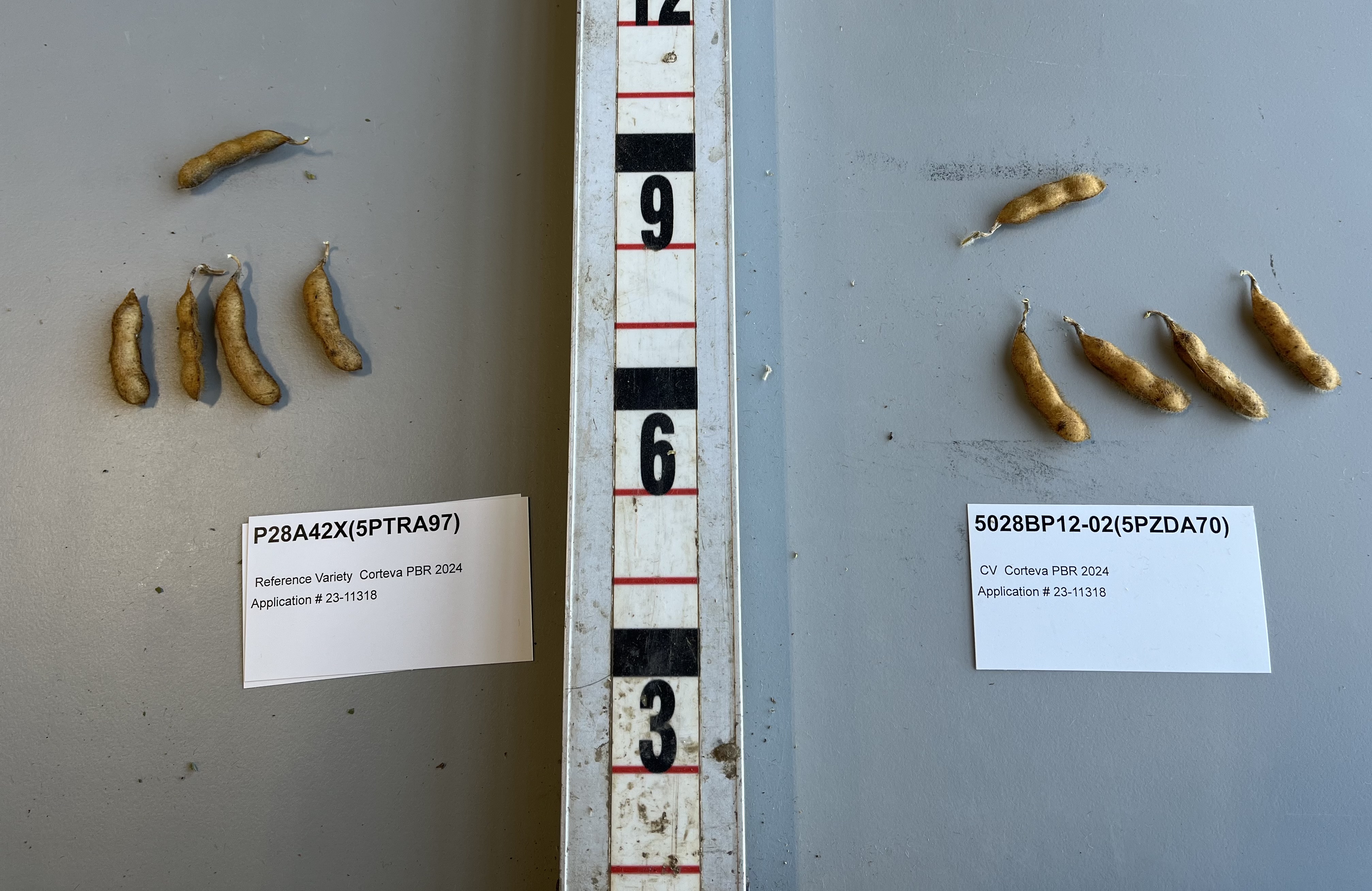 Soybean: 'P28A39E' (right) with reference variety 'P28A42X' (left)