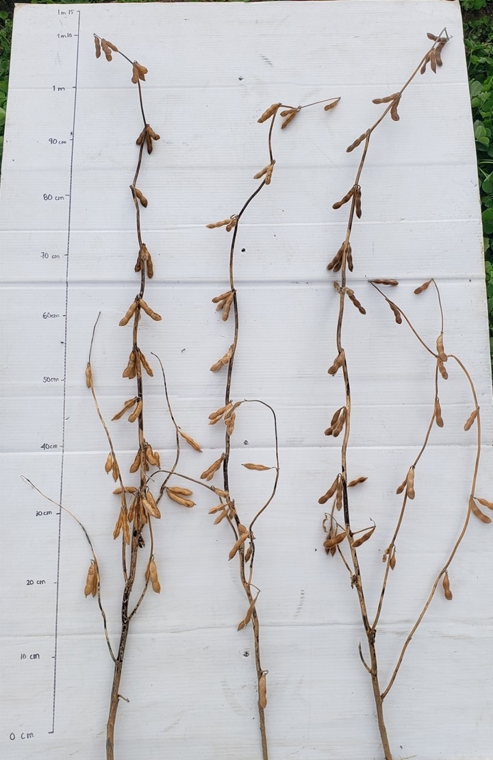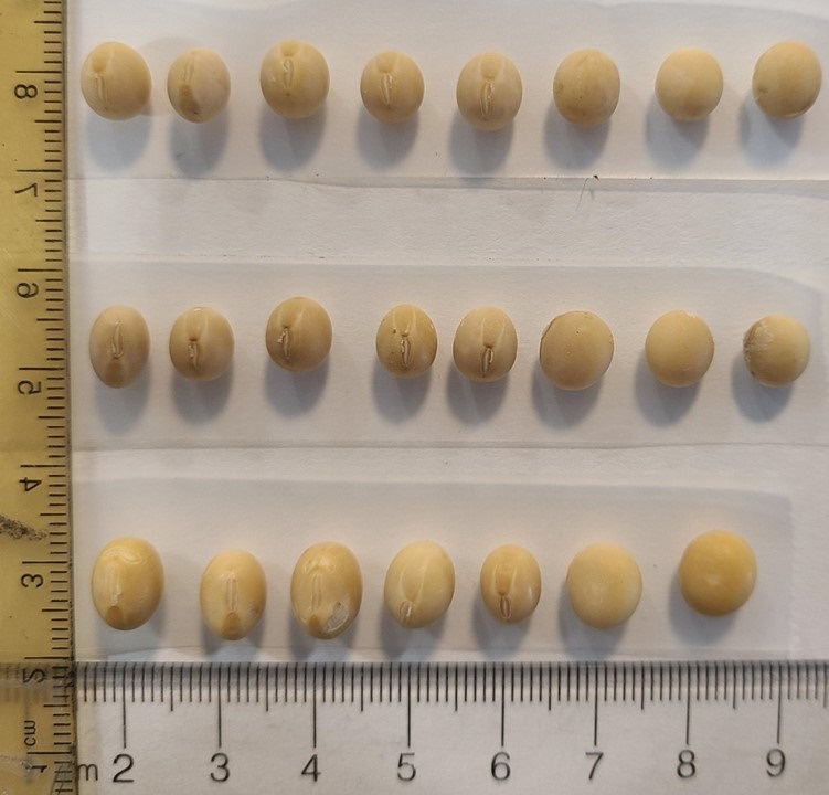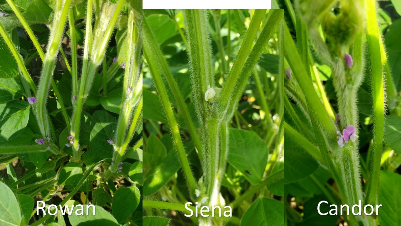 Soybean: 'Siena' (above) with reference varieties 'Rowan' (middle) and 'Candor' (bottom)