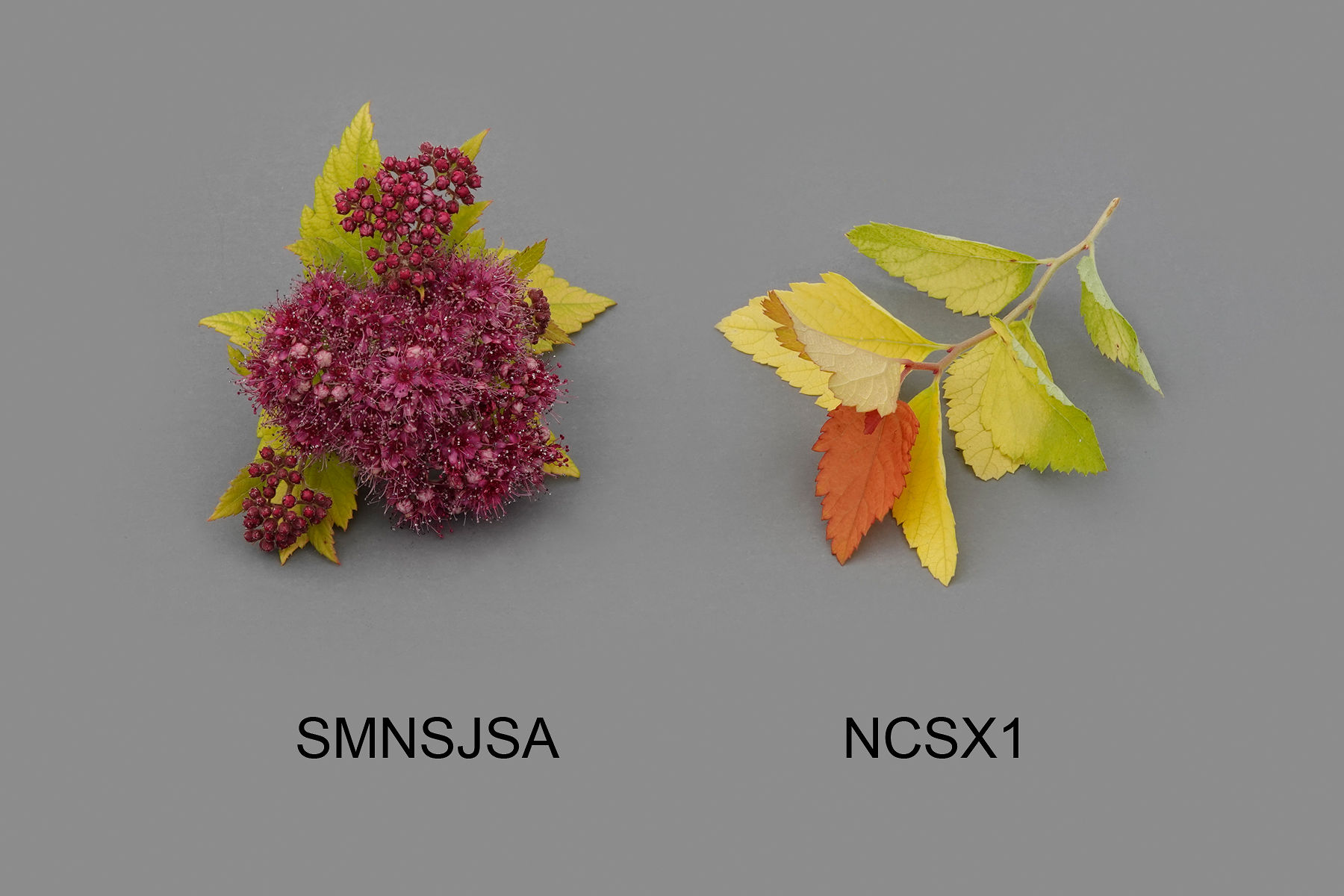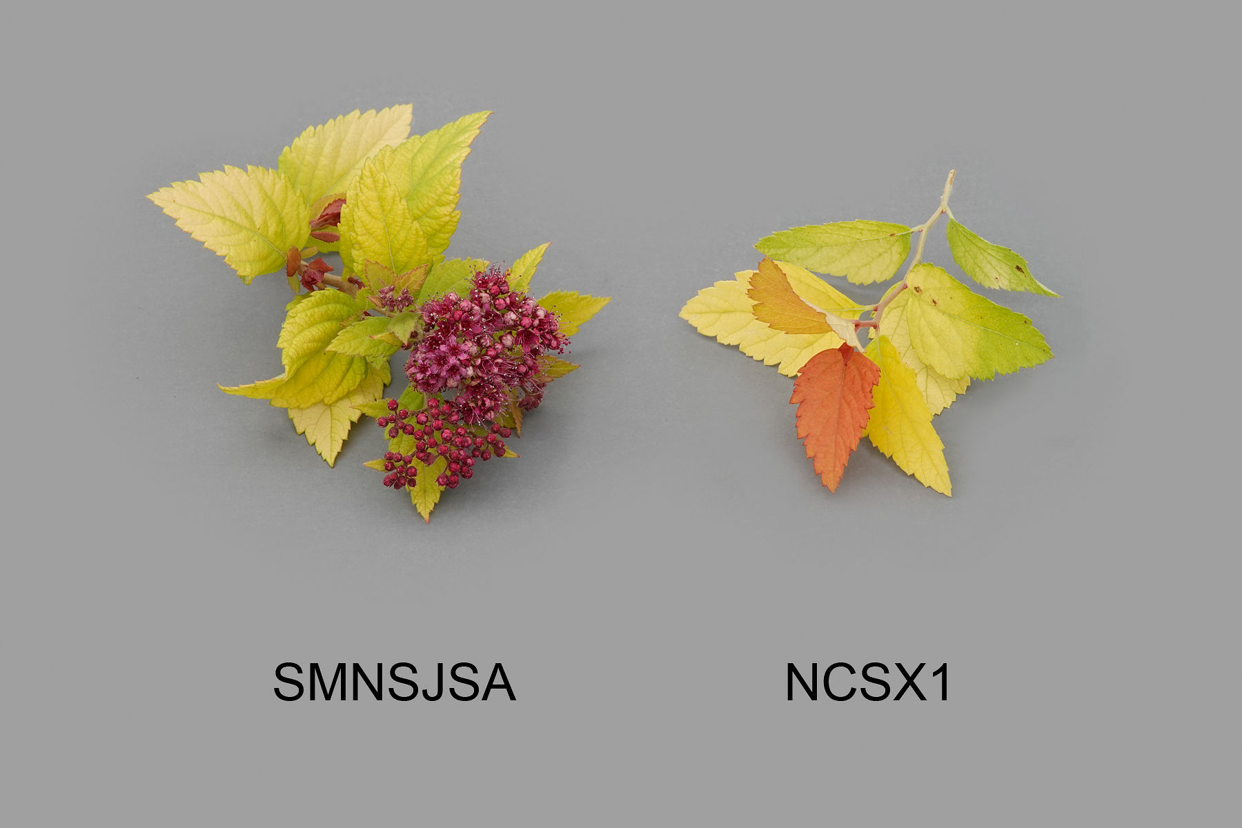 Spirea: 'SMNSJSA' (left) with reference variety 'NCSX1' (right)