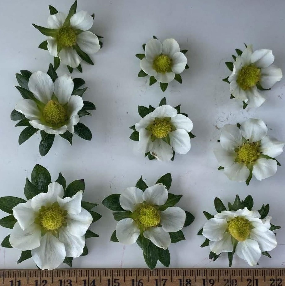 Tests & Trials: The comparative trial for FL1630-128' was conducted by Expert Agriculture Team Ltd., in Chilliwack, British Columbia during the 2024 growing season. The plots were arranged in a RBC design with 3 replicates. Each replicate consisted of 10 plants for a total of 30 plants of each variety. Plants were in double offset rows planted with approximately 30 cm between plants and 20 cm between rows. Observations and measurements were taken from 10 plants or parts of 10 plants of each variety. Mean differences were significant at the 5% confidence probability level based on a paired Student's t-test.