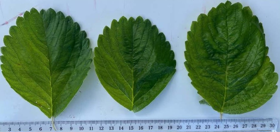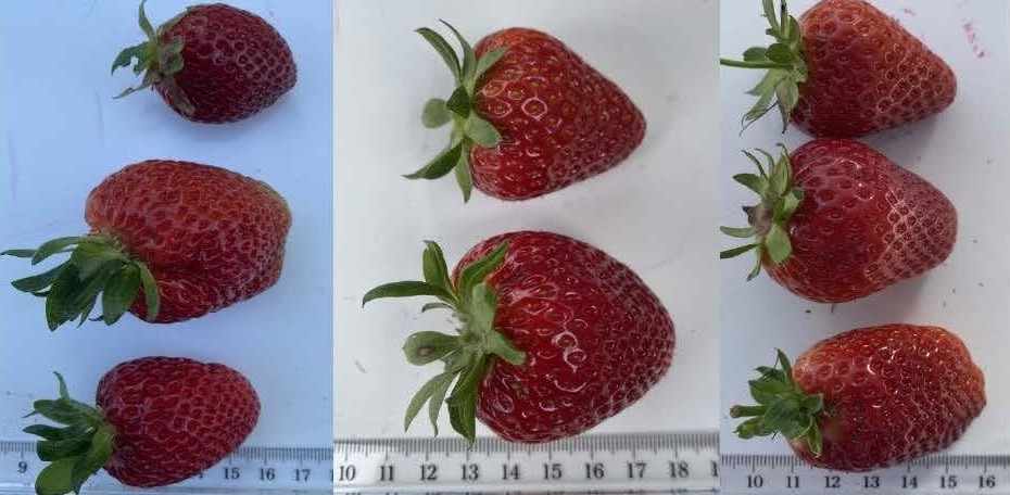 Strawberry: Florida Brilliance' (left) with reference varieties FL1630-128' (centre) and Florida 127' (right)