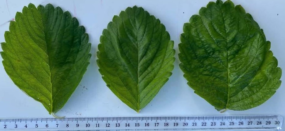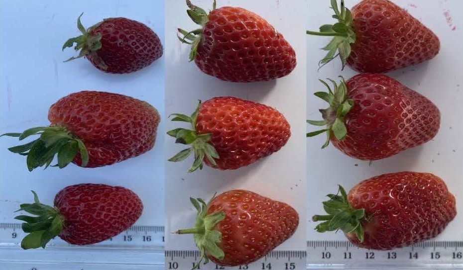 Strawberry: Florida Brilliance' (left) with reference varieties FL1678-109' (centre) and Florida 127' (right)