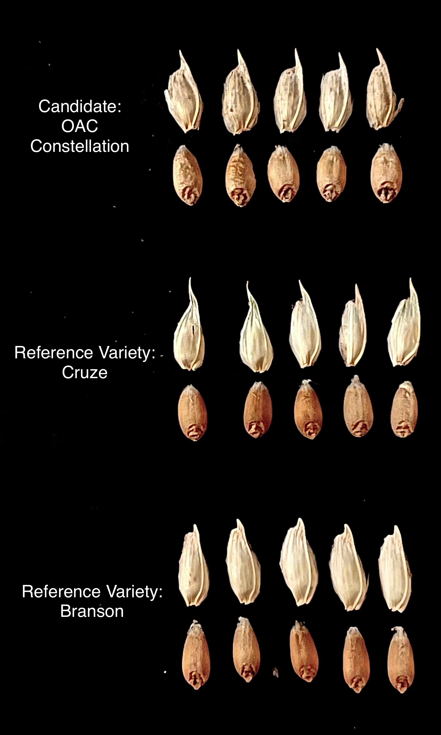 Wheat: OAC Constellation' (centre) with reference varieties Branson' (left) and Cruze' (right)