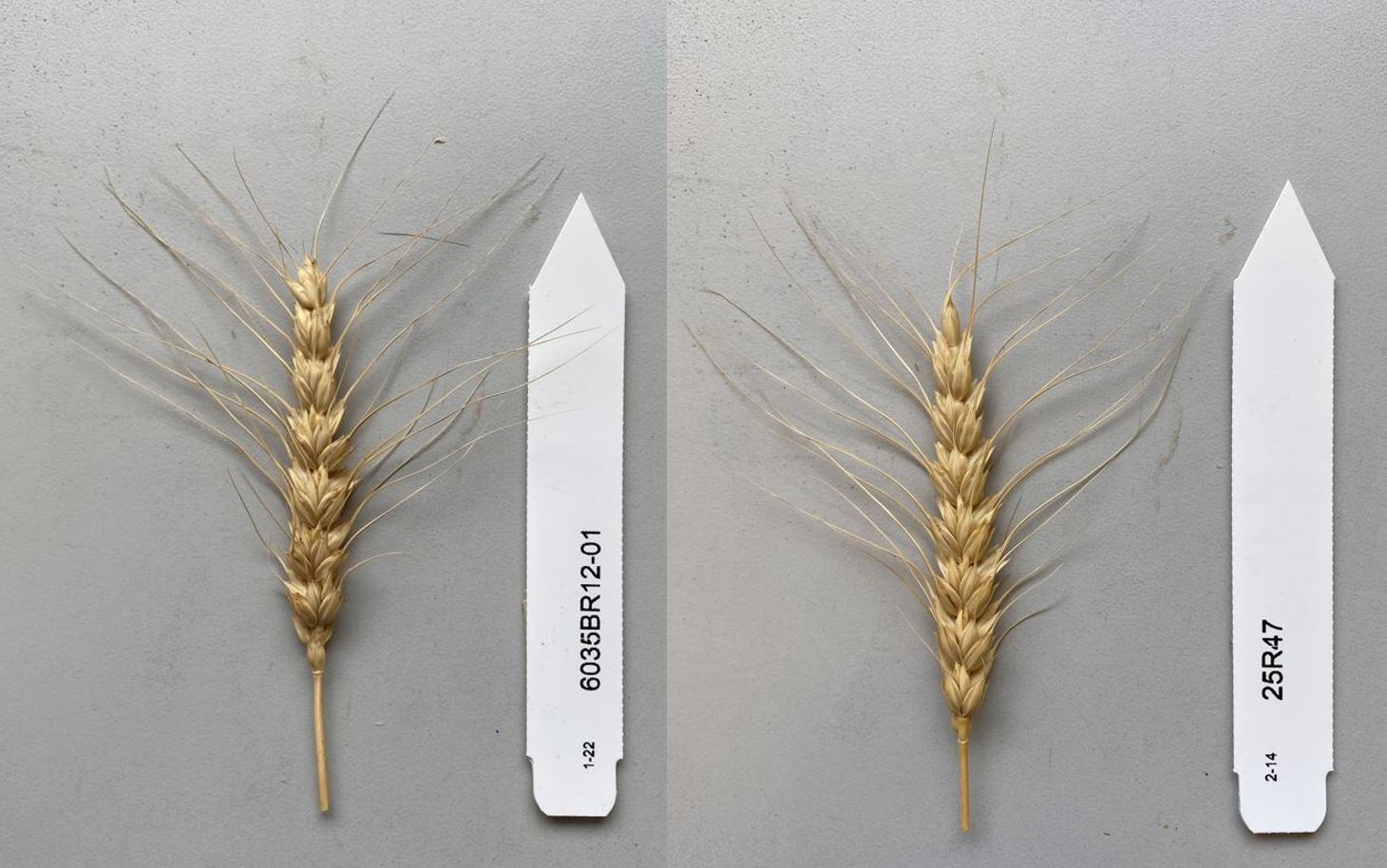 Wheat: 6PVLC66B' (left) with reference variety 25R47' (right)