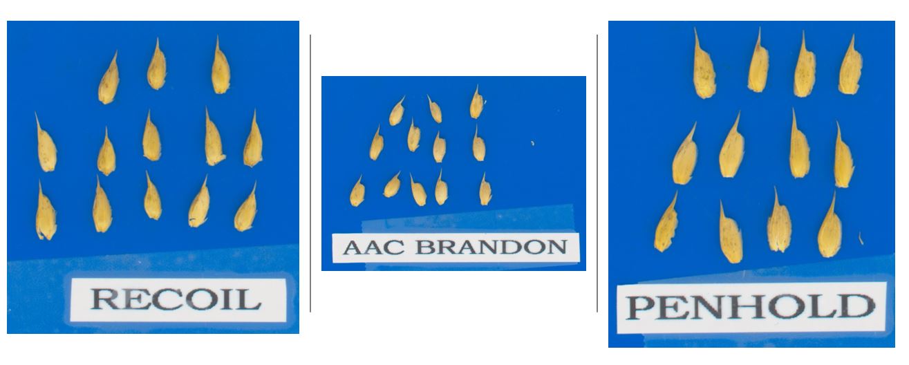 Wheat: Recoil' (left) with reference varieties AAC Brandon' (centre) and AAC Penhold' (right)