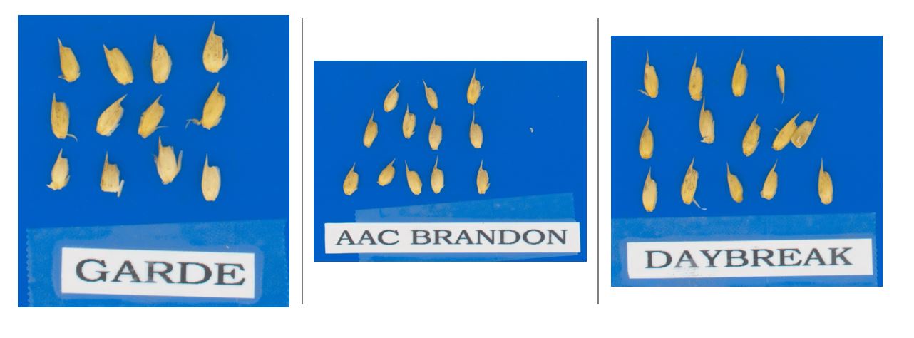 Wheat: Garde' (left) with reference varieties AAC Brandon' (centre) and Daybreak' (right)