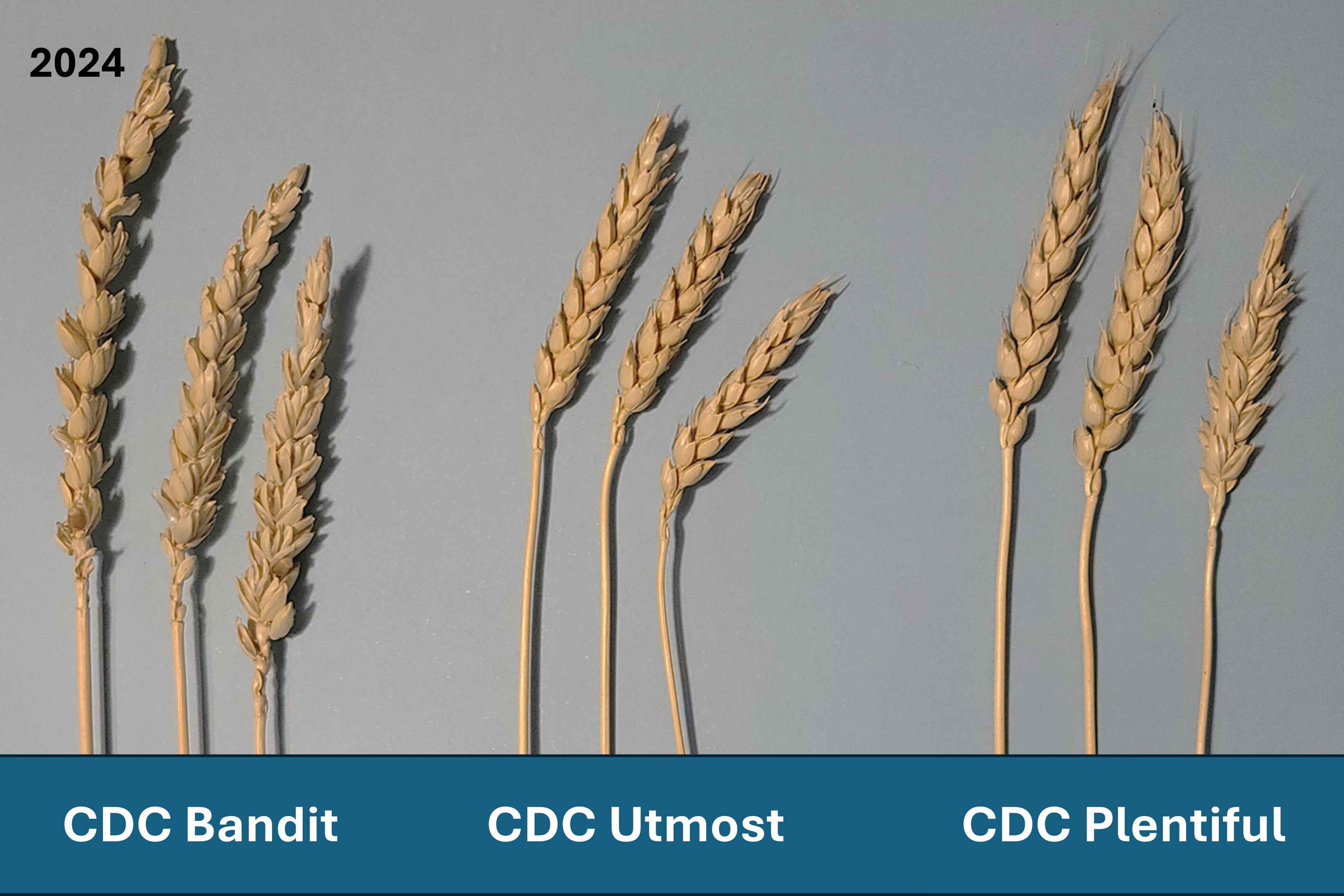 Wheat: CDC Bandit' (left) with reference varieties CDC Utmost' (centre) and CDC Plentiful' (right)