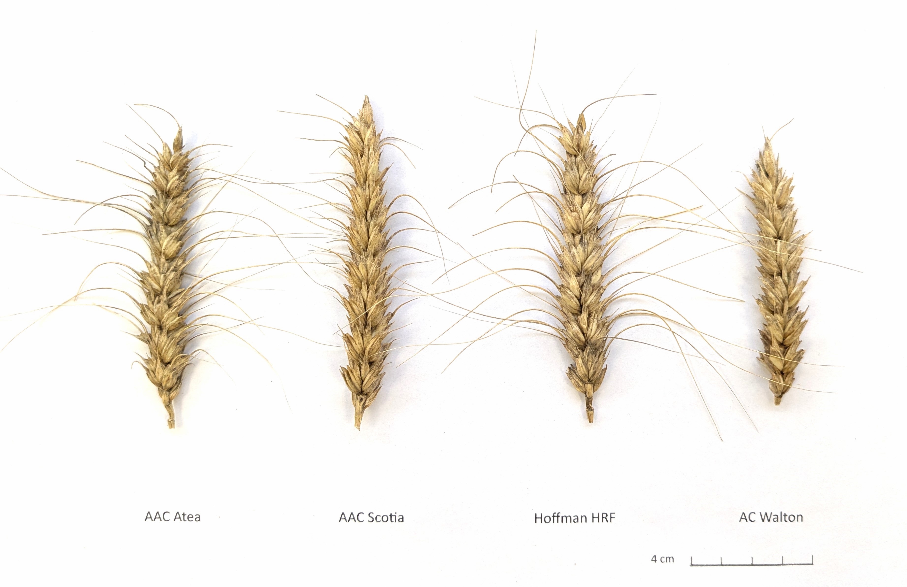 Wheat: AAC Atea' (left) with reference varieties AAC Scotia' (centre left), Hoffman HRF' (centre right) and AC Walton' (right)